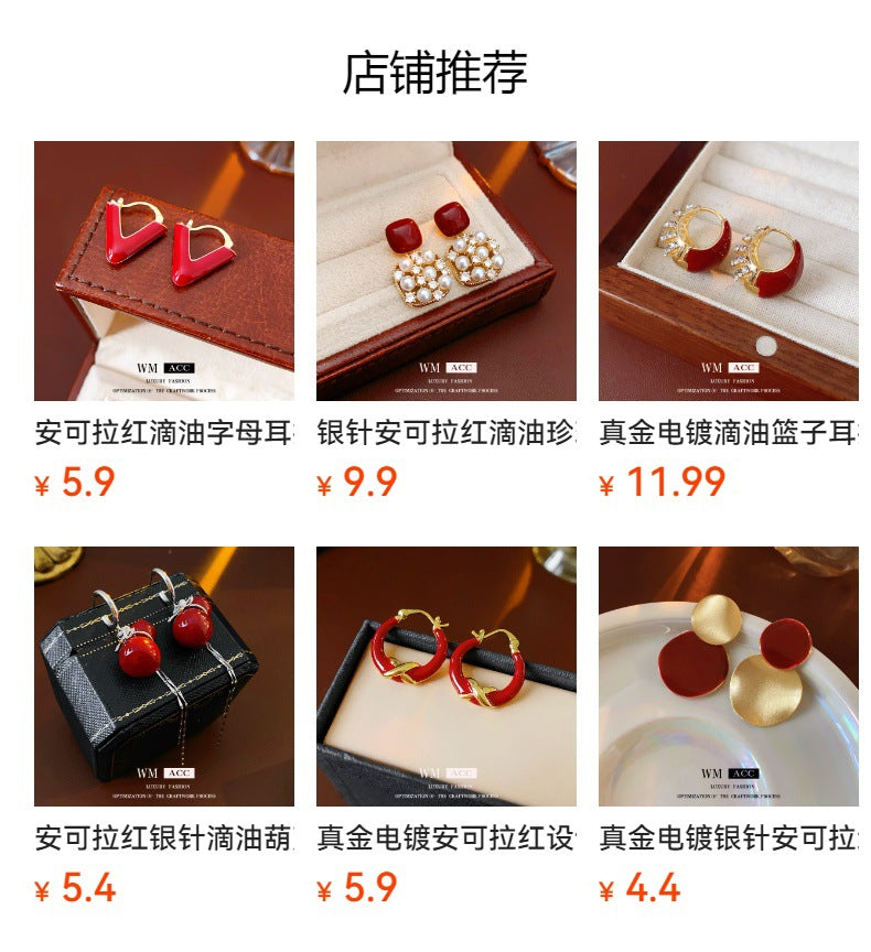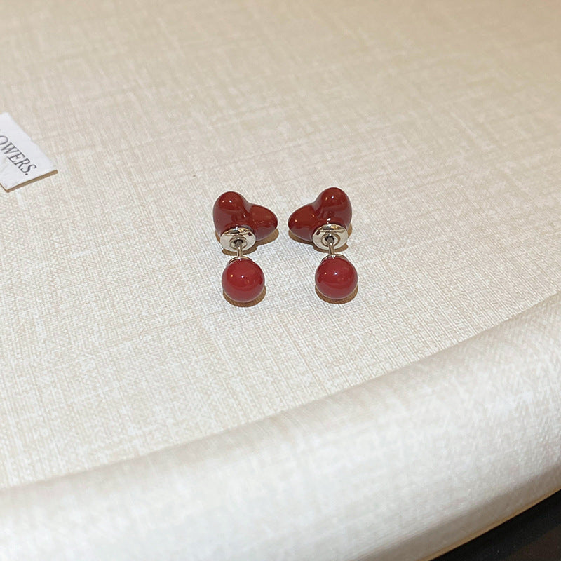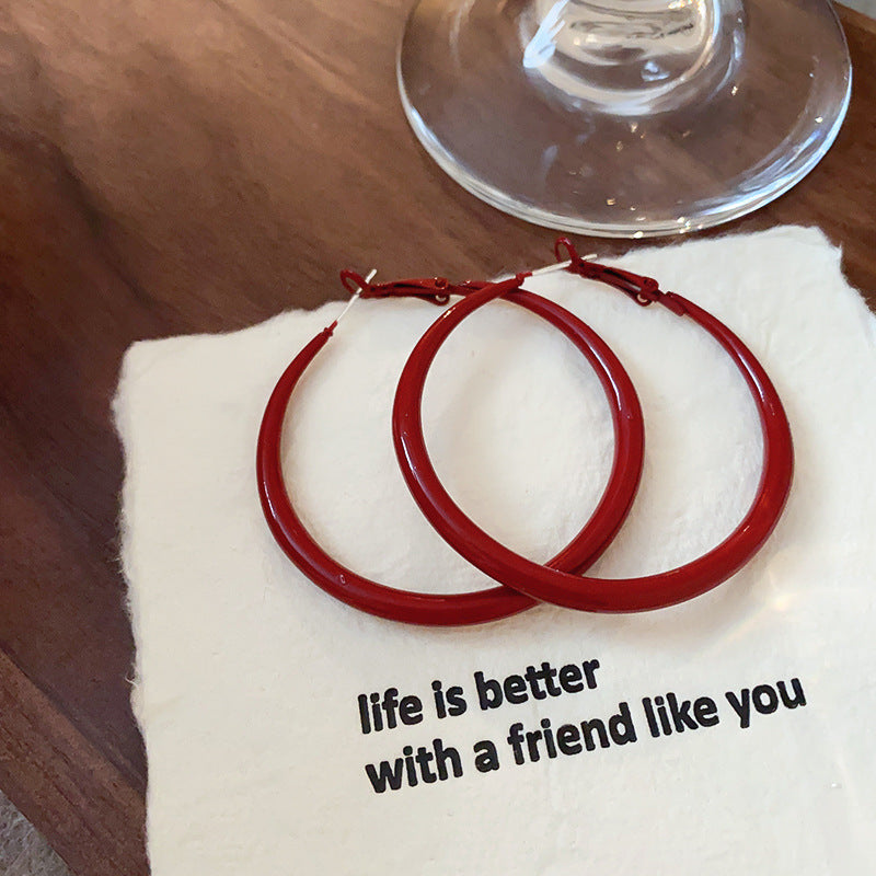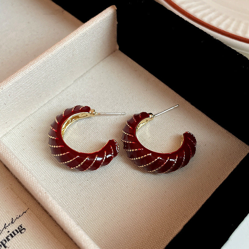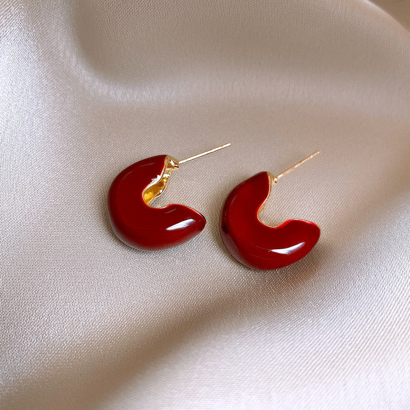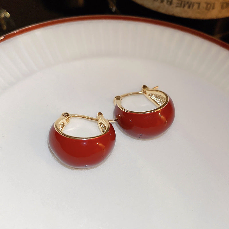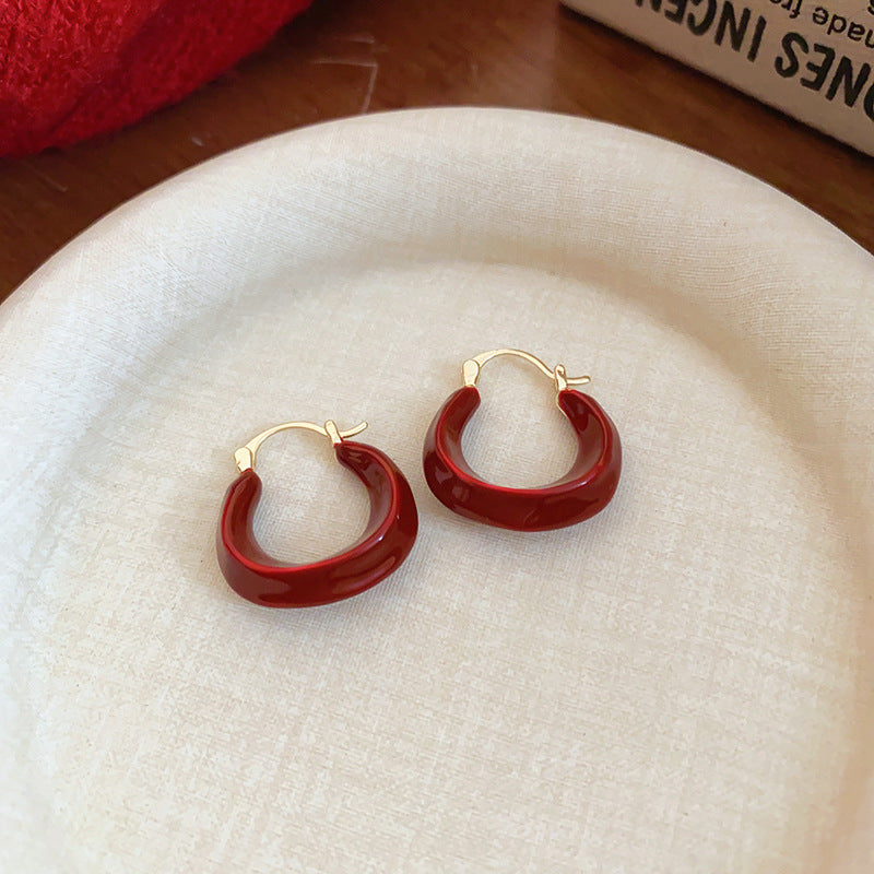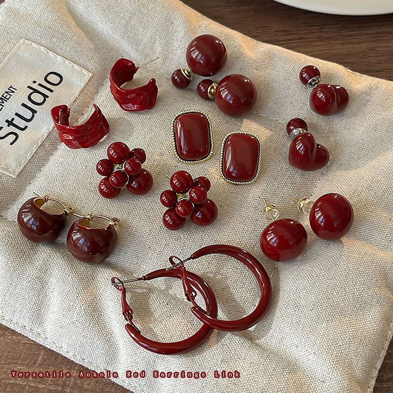Silver Needle Ancora Red Oil Drop Geometric Earrings Niche Versatile Retro Elegant Studs High-end Fashion Earrings for Women