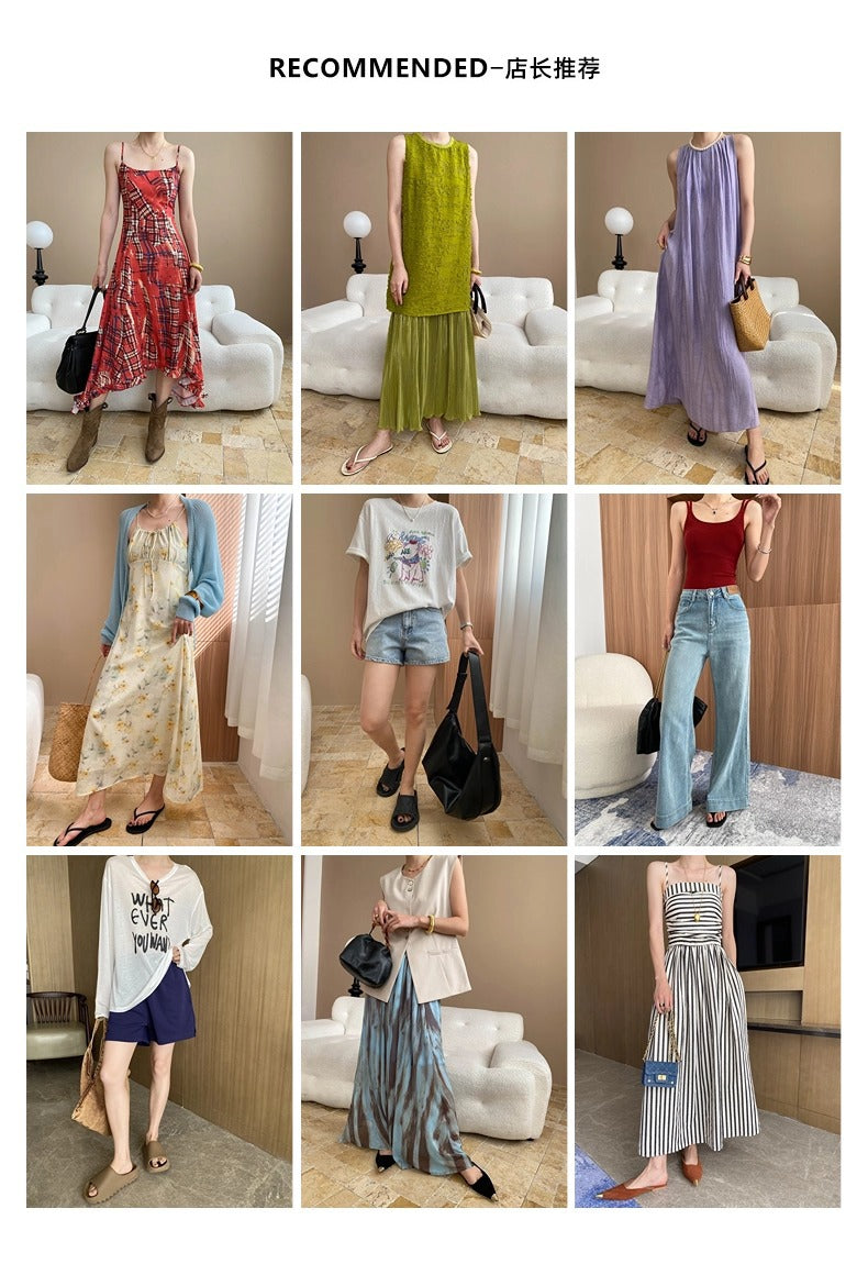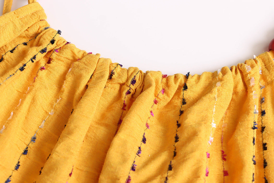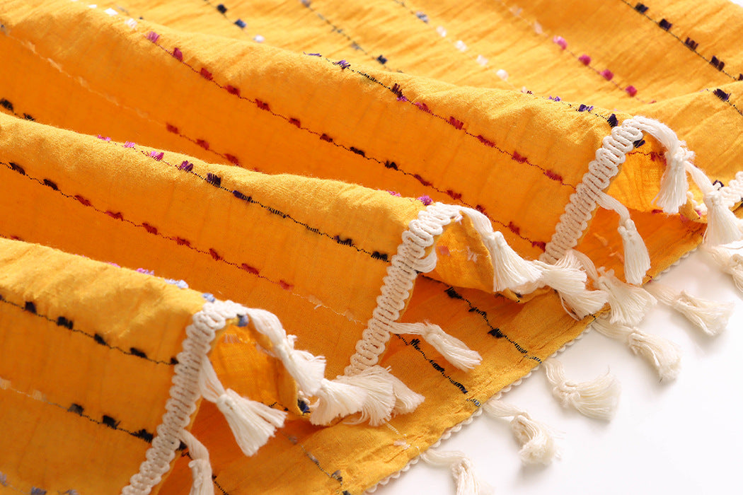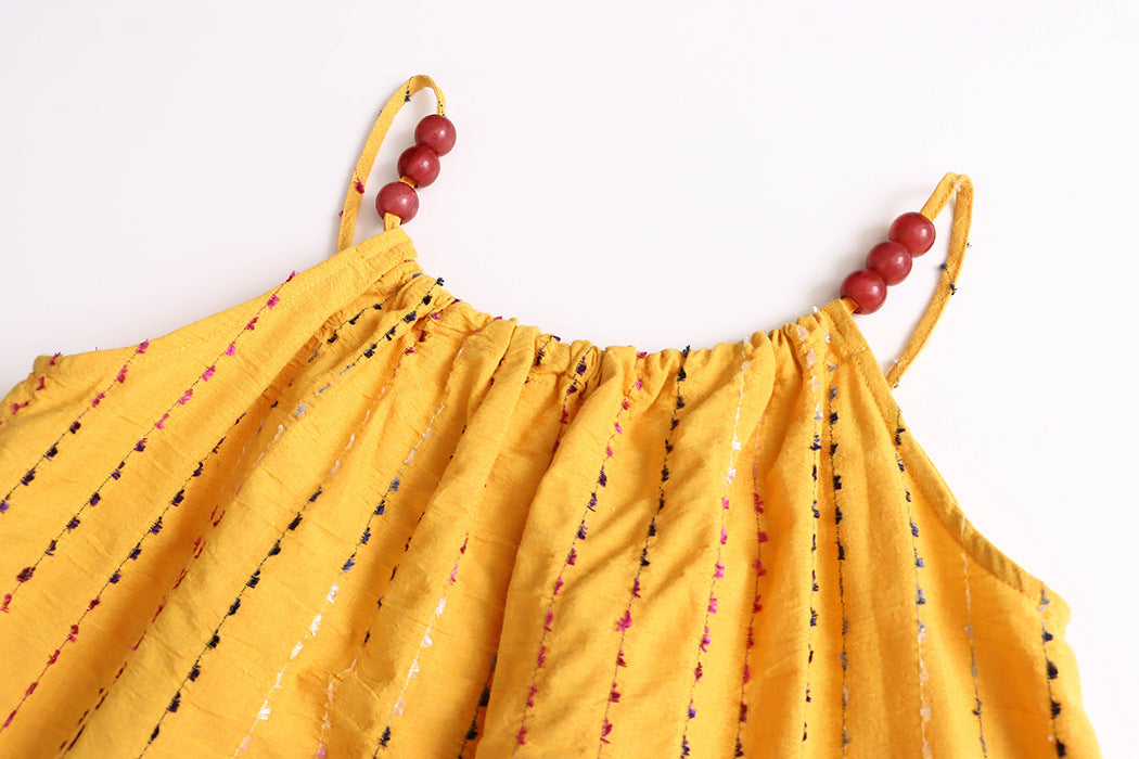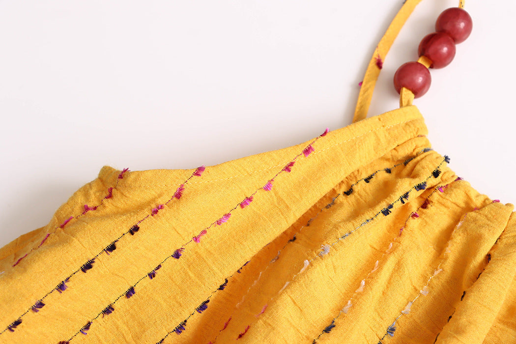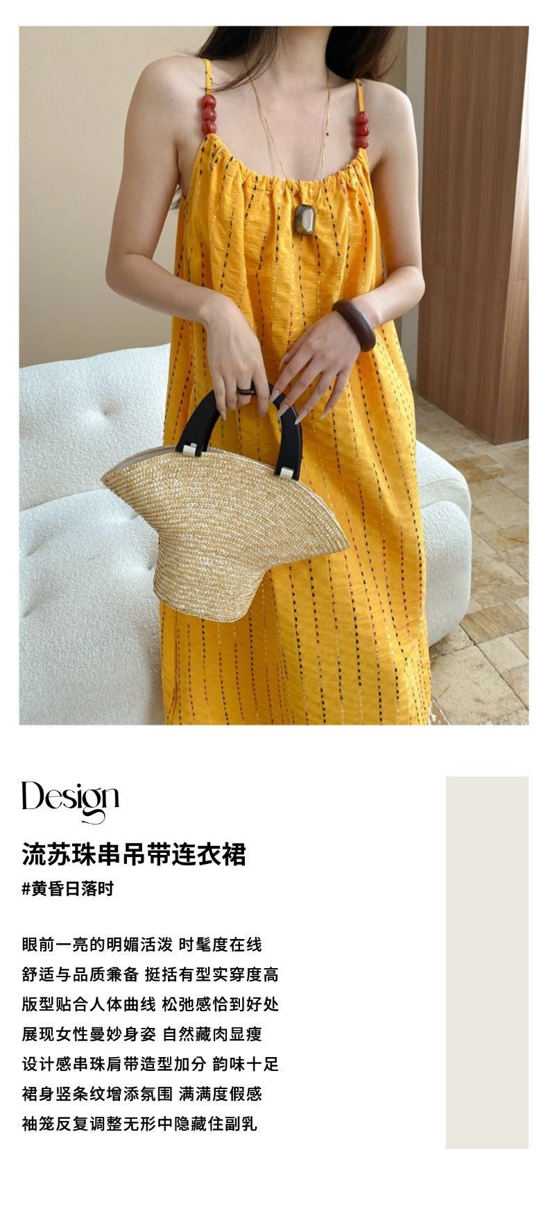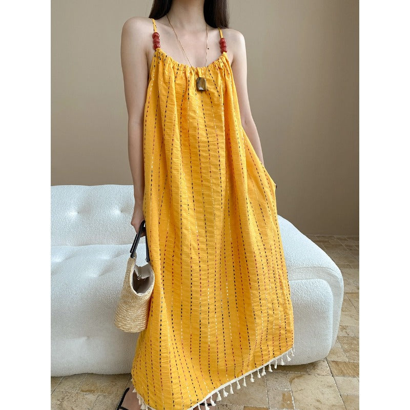 Sinan At dusk and sunset Full Grid Line Beach Vacation Tassel Beaded Strap Dress SN7536