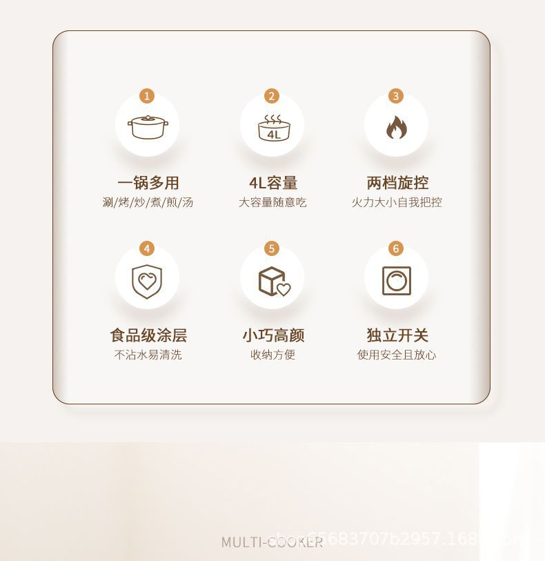 Skyworth Skyworth Electric Hot Pot Household Electric Frying Pan Multi-Functional Small Electric Cooking Pot Dormitory Steaming and Frying Electric Pot F220