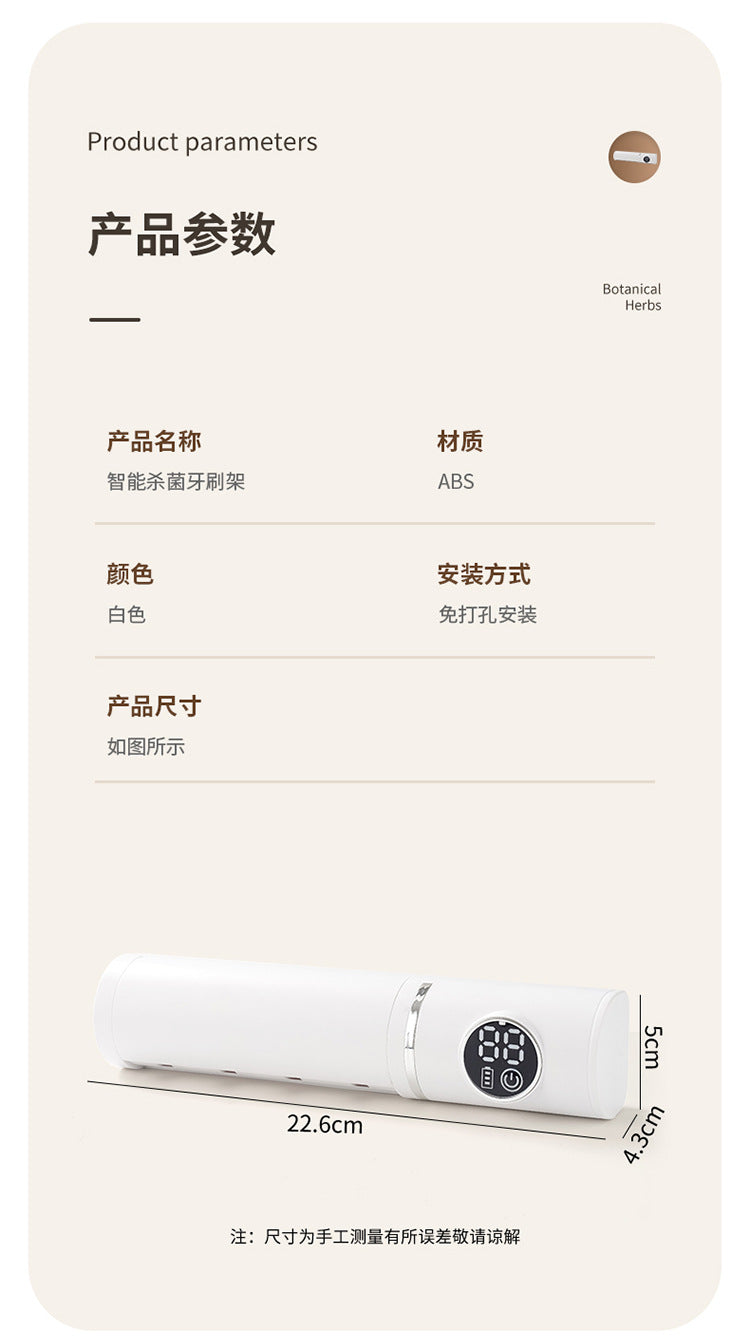 Smart Disinfection and Drying Toothbrush Holder Bathroom Wall-Mounted No-Drill Ultraviolet Sterilizer Drying Toothbrush Holder