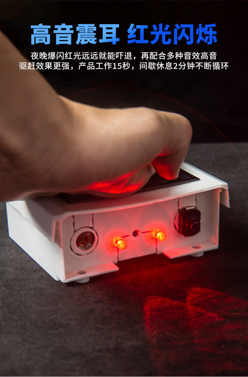 Solar-Powered Crop Field Dog Barking Alarm Outdoor Flashing Animal-Repelling Sensor Light