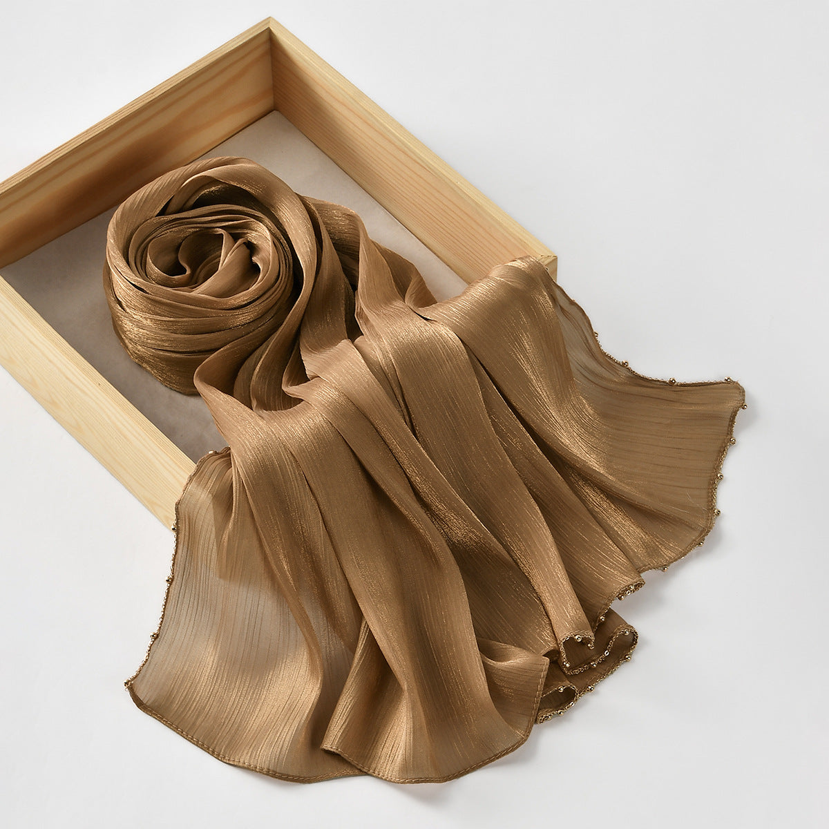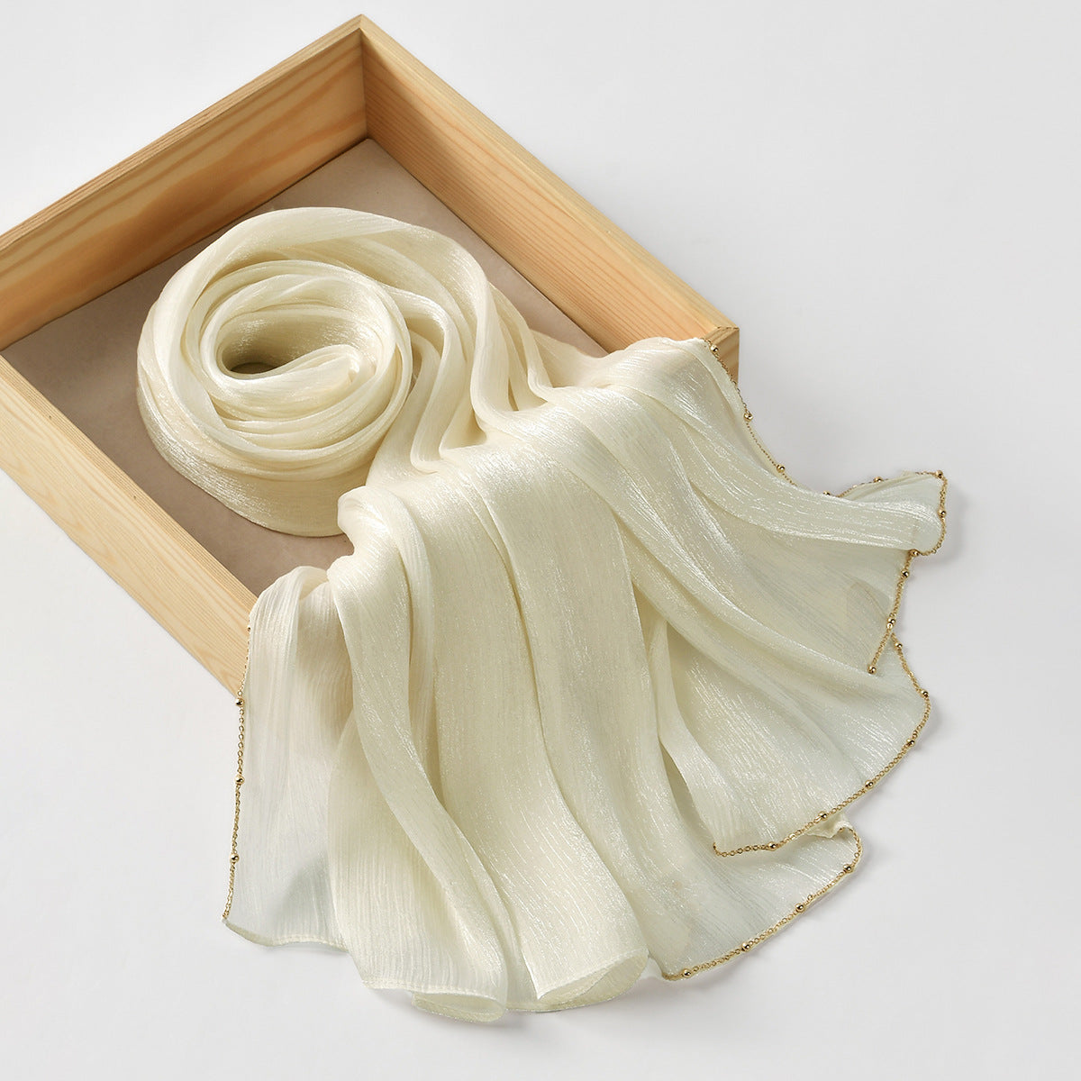 Southeast Asia Hot-Selling Popular Solid Color Chiffon Island Silk Chain Long Scarf Summer Refreshing Breathable Sun-Proof Ethnic Headscarf