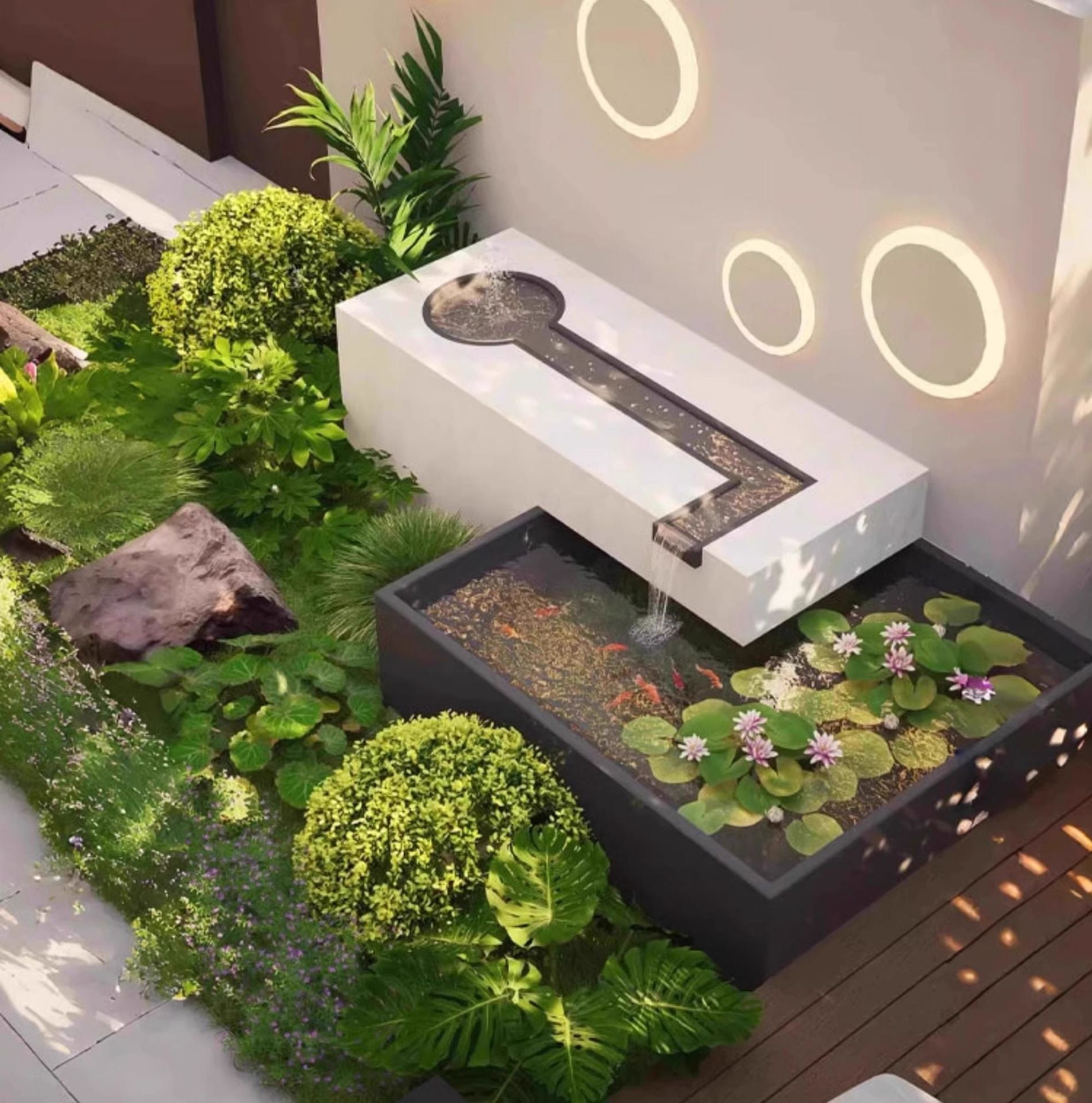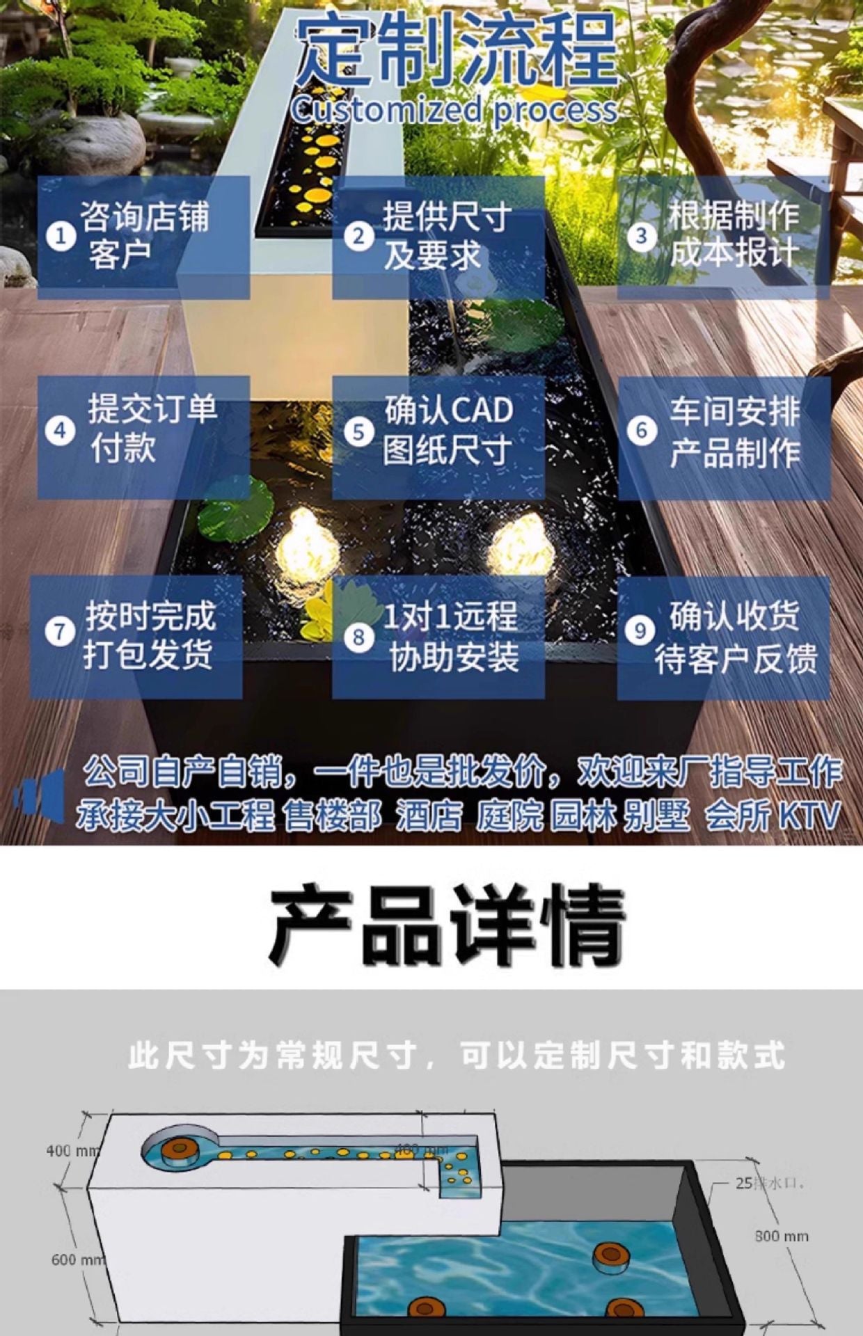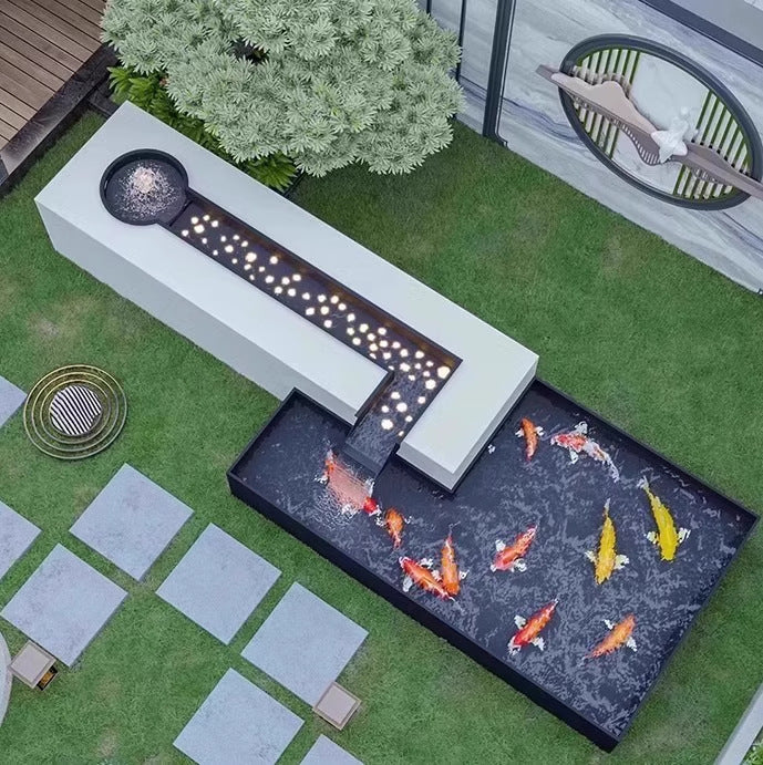 Stainless Steel Fish Pond Water Feature Flowing Water Ornament Garden Courtyard Outdoor Fountain Circulating Water Landscape Engineering Decoration