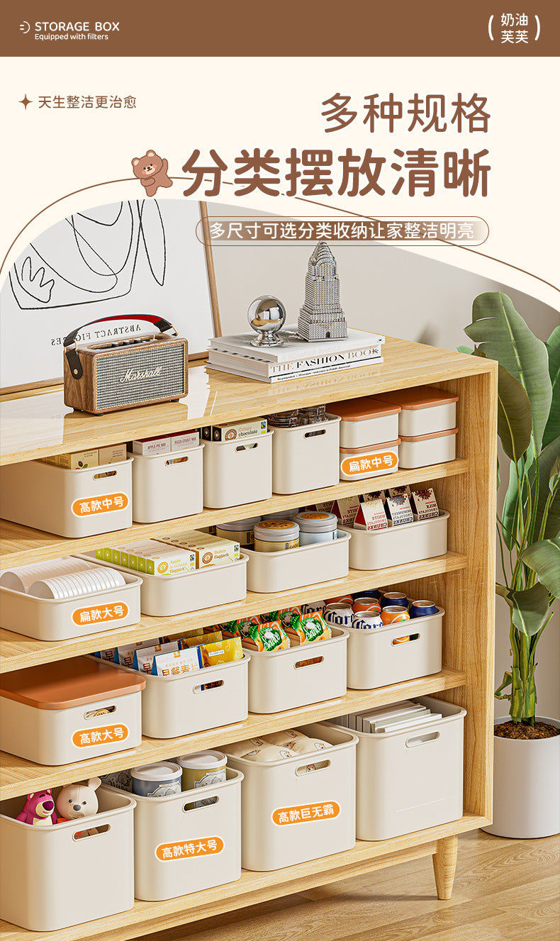 Storage Box with Lid for Household Snacks and Toys, Desktop Organizer, Kitchen Cabinet Plastic Storage Box