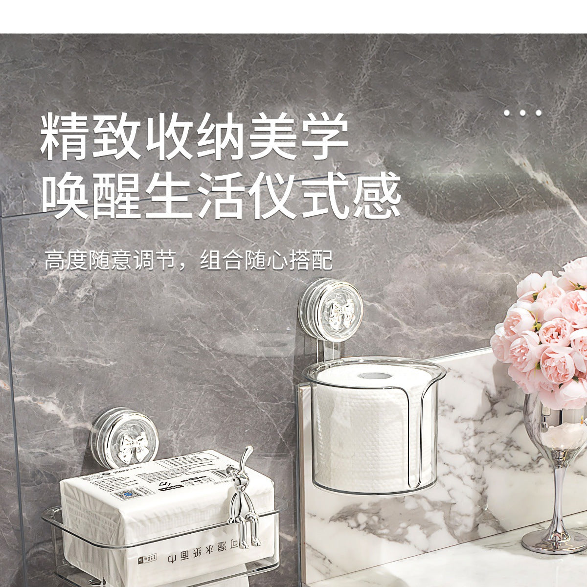 Suction Cup Tissue Box Bathroom Toilet Paper Box Wall-Mounted Punch-Free Bathroom Roll Stand Toilet Paper Storage Box