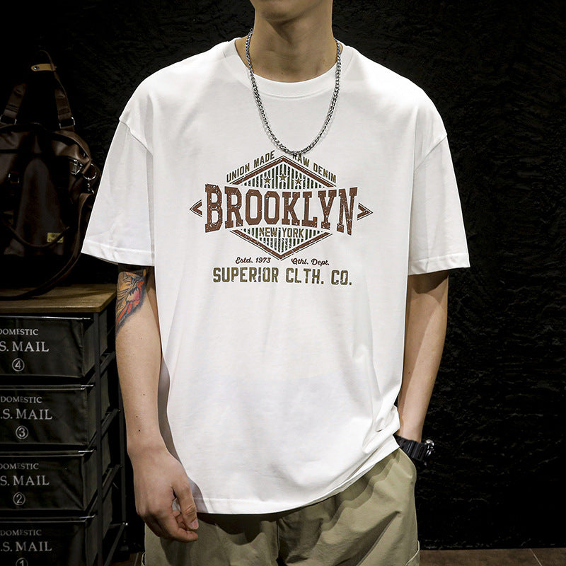 Summer Heavyweight American Style Trendy Brand Short Sleeve Men t Loose Casual Design Trendy Super Popular Retro Plus Size Half Sleeve Shirt