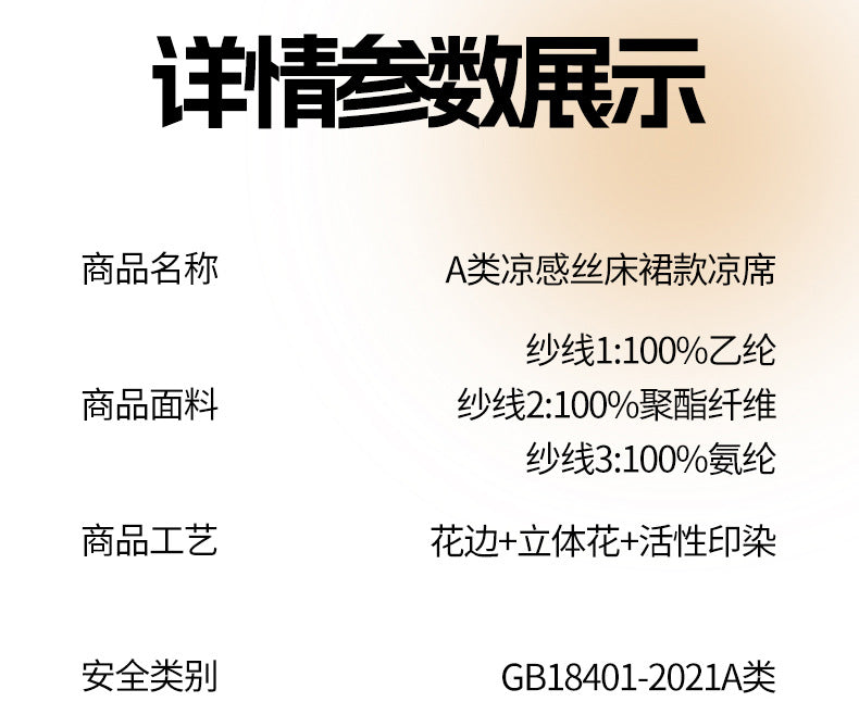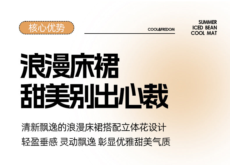 Summer Ice Silk Cooling Mat Lace Edge Cool Soft Mat Three-Piece Set Ethylene Fiber Ice Bean Mat Bed Skirt Style Bedding
