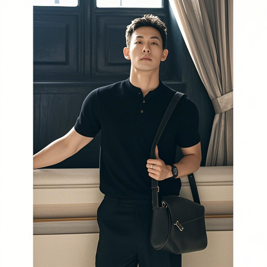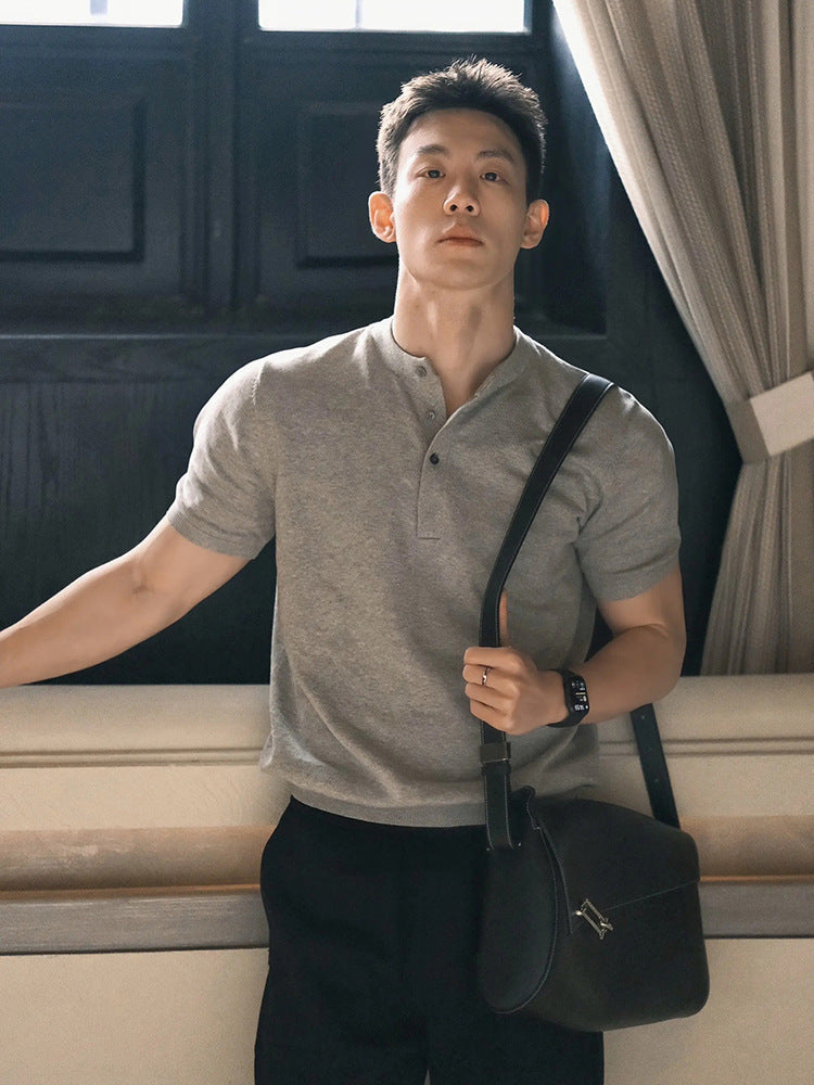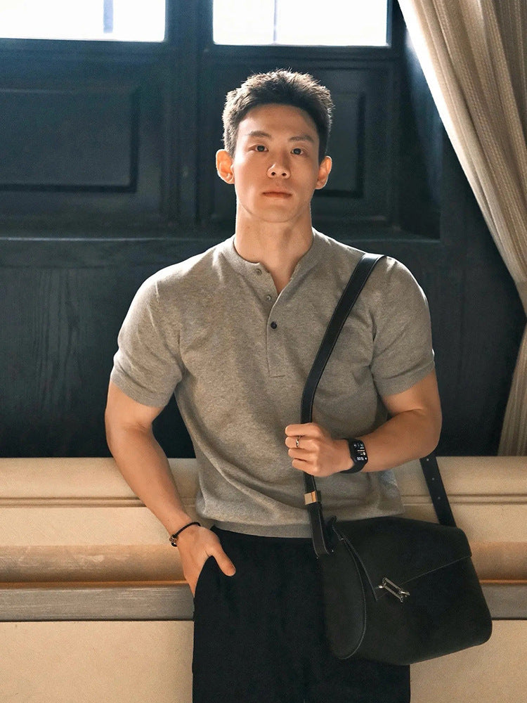 American Style Fitness Henley Neck Short Sleeve Polo Shirt for Men Summer Regular Shoulder Cuffed T-Shirt Heavyweight Stiff Half Sleeve
