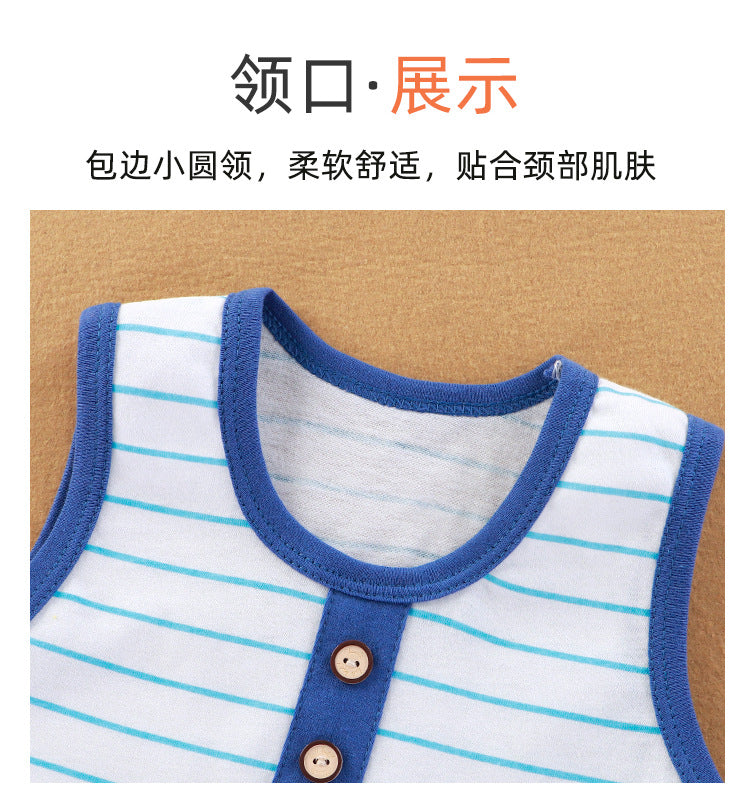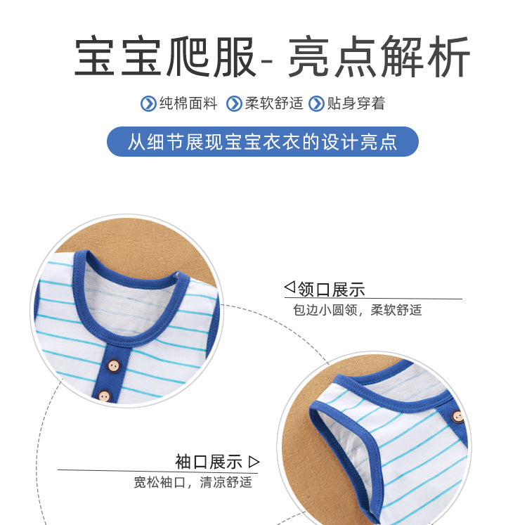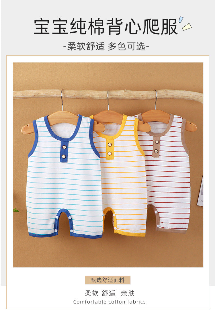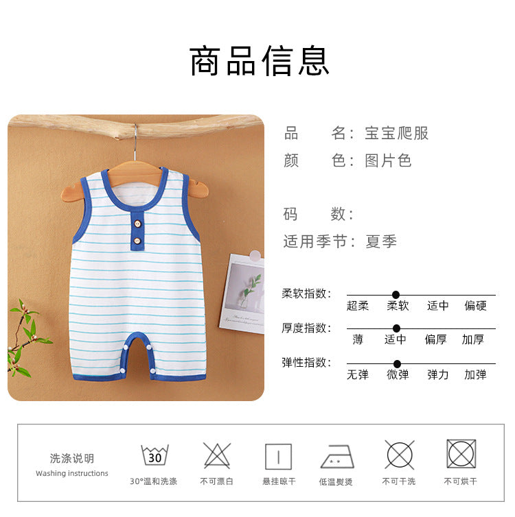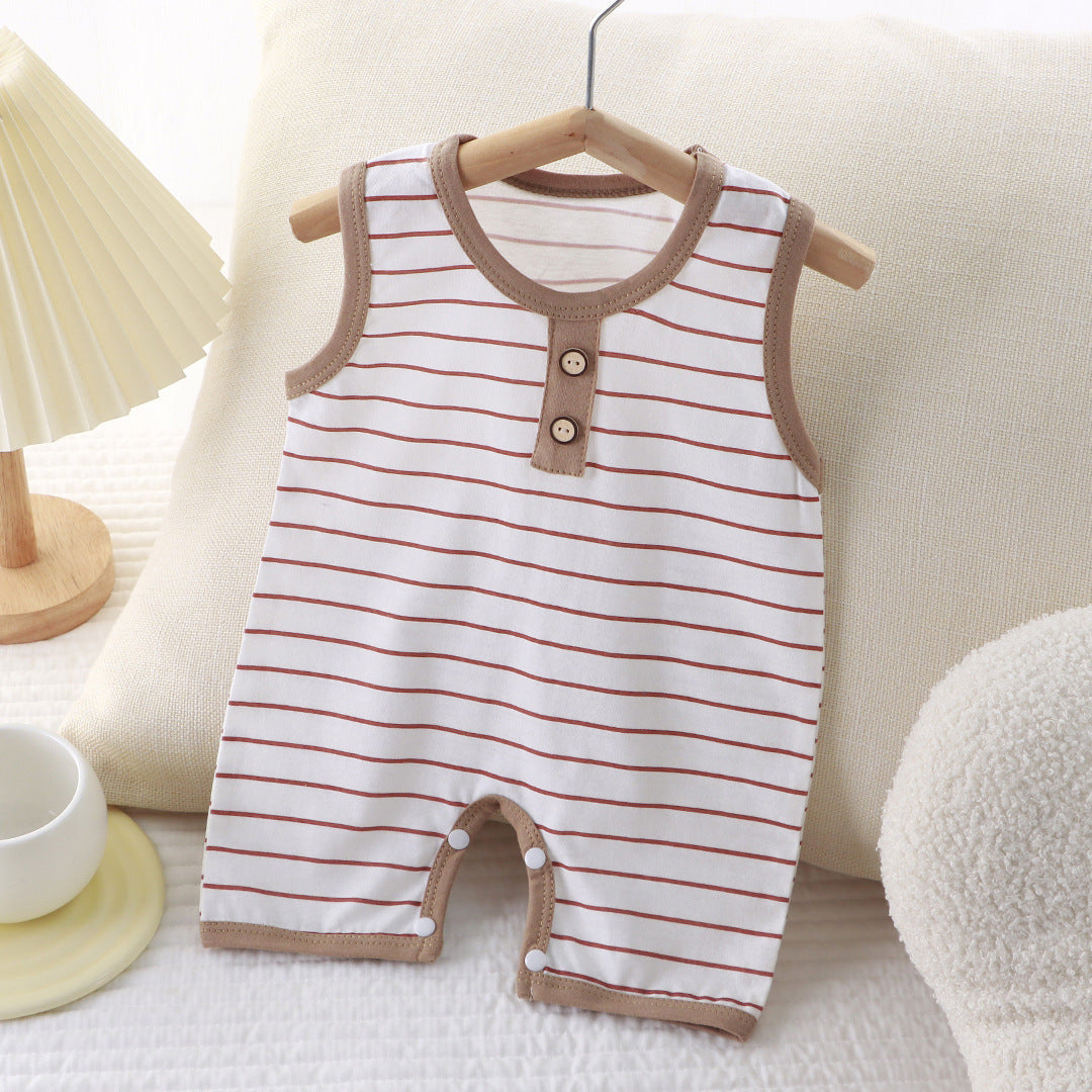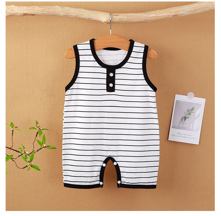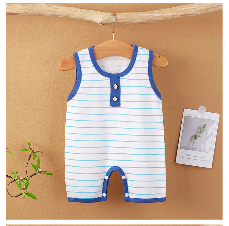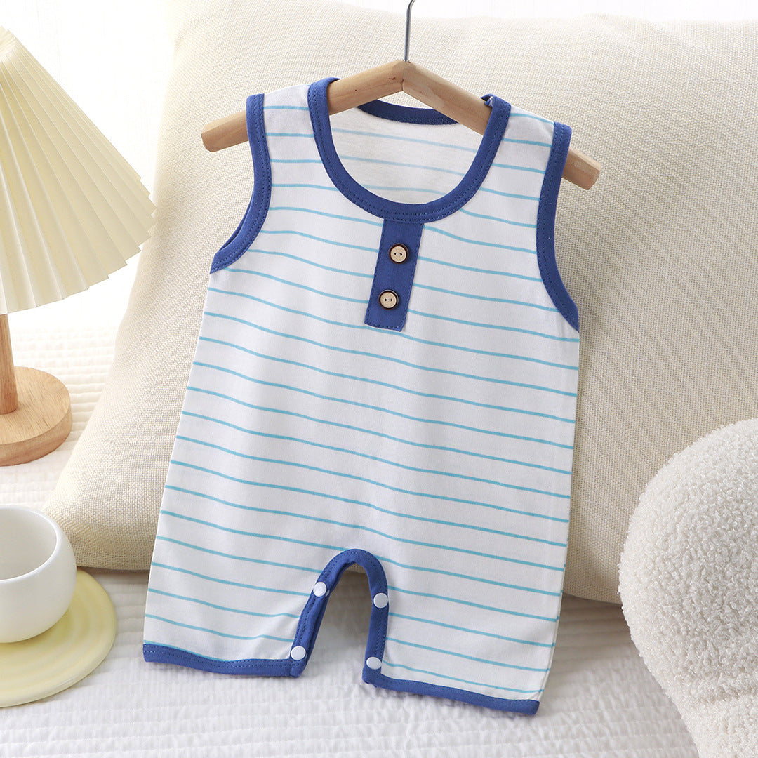 Summer New Baby Romper for Boys and Girls, Thin Cotton Sleeveless Jumpsuit Newborn Striped Vest Romper