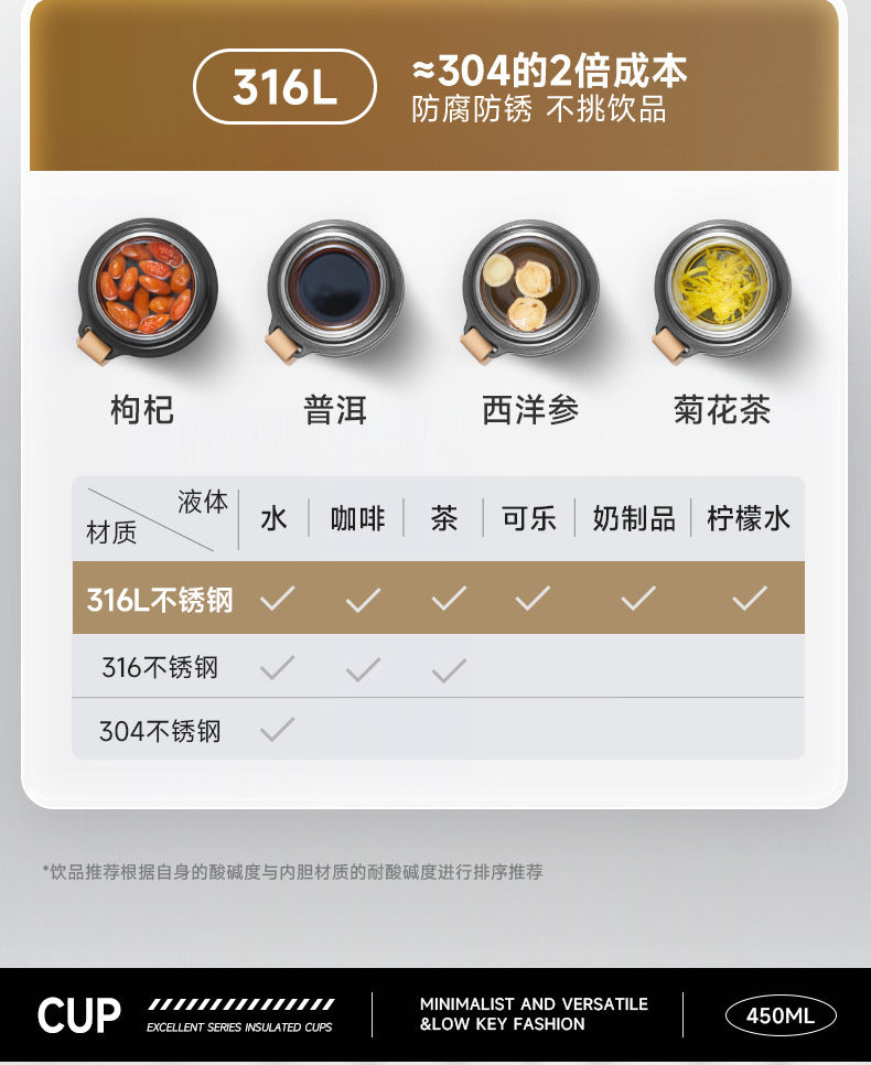 Supor Insulated Cup Outdoor Portable for Men and Women with Handle Ring Fresh and Simple316Stainless Steel Source Manufacturer