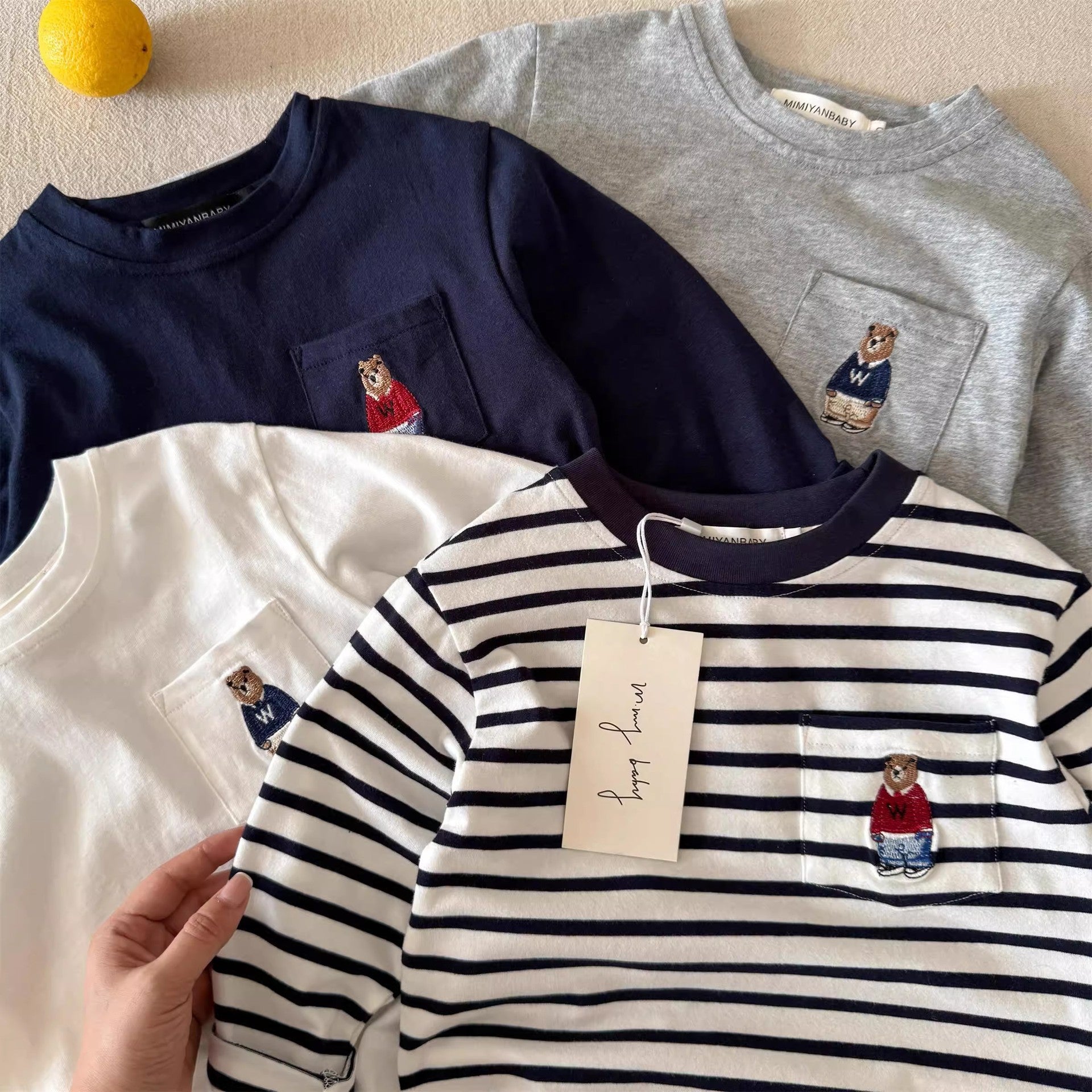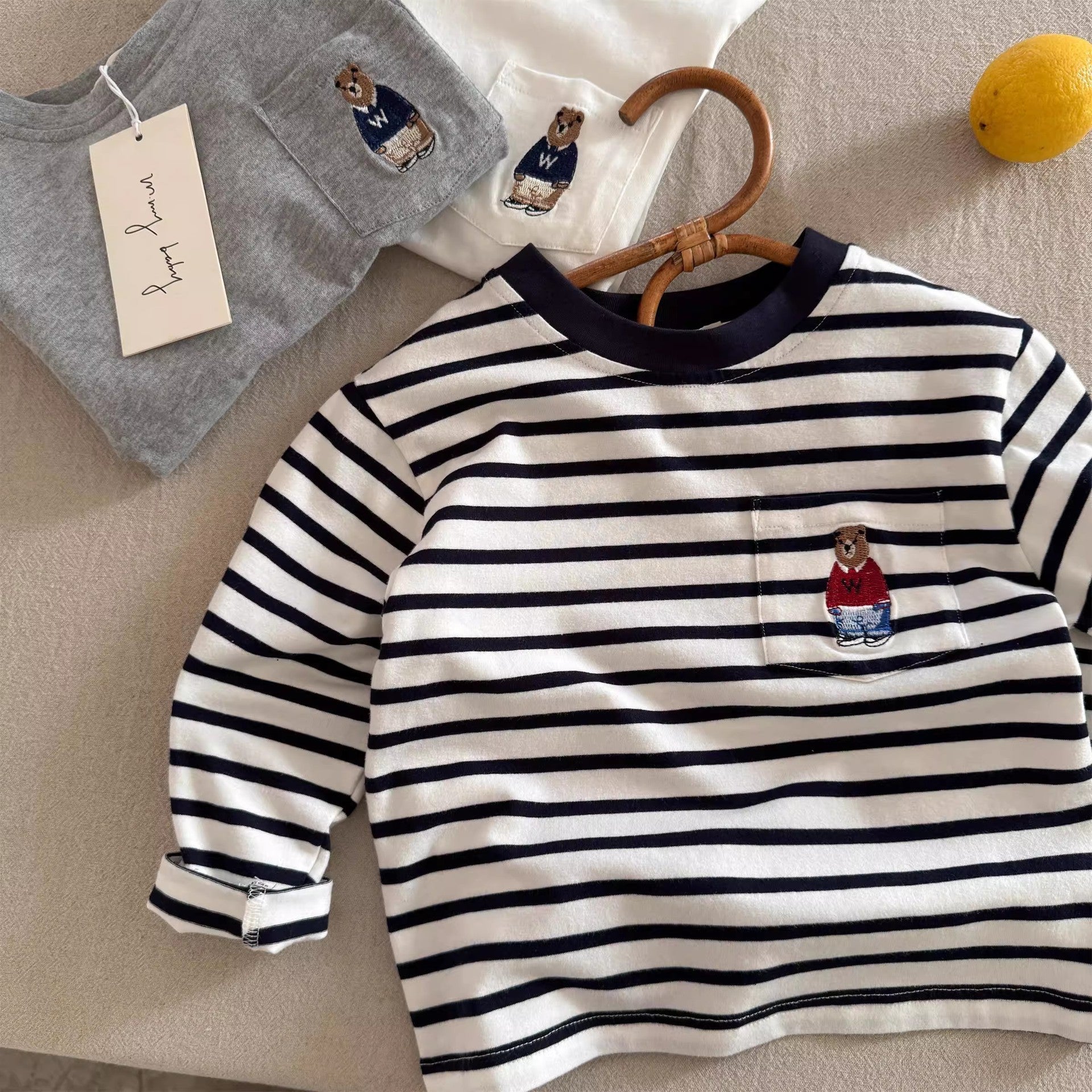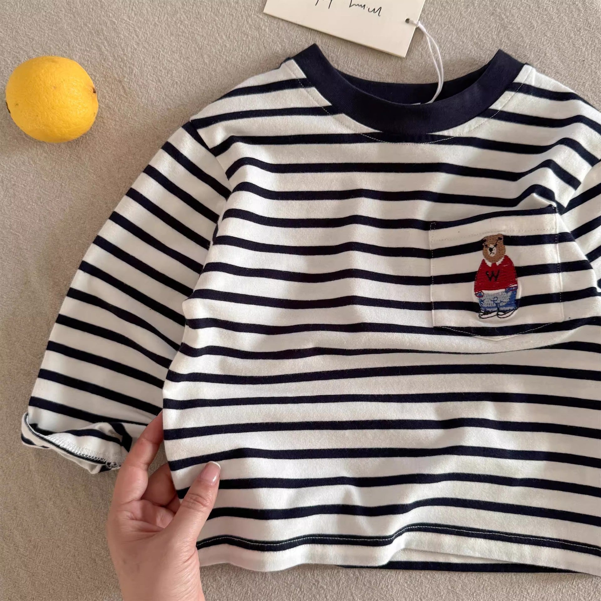 Sweet Little Chef Children's Long Sleeve T Autumn Boys' Japanese Style Bear Base Shirt Baby Toddler Striped Inner Layer Top