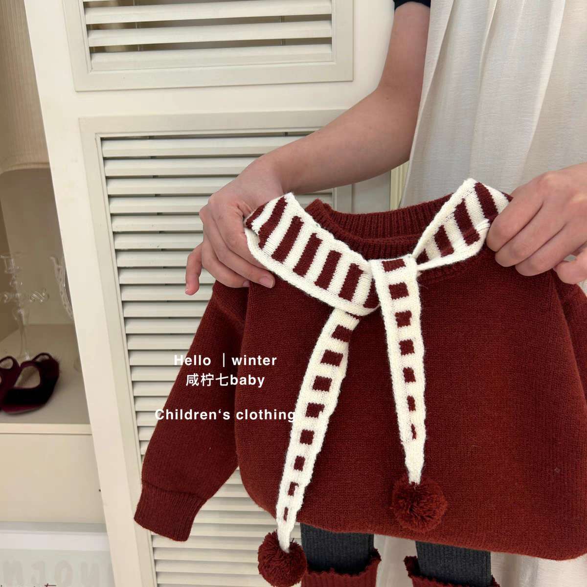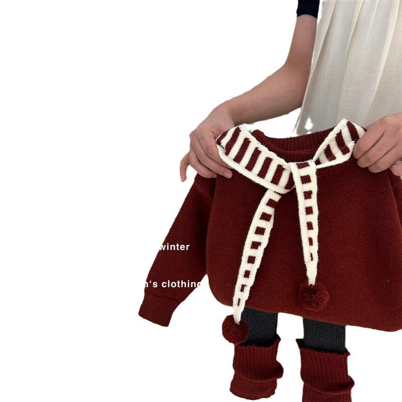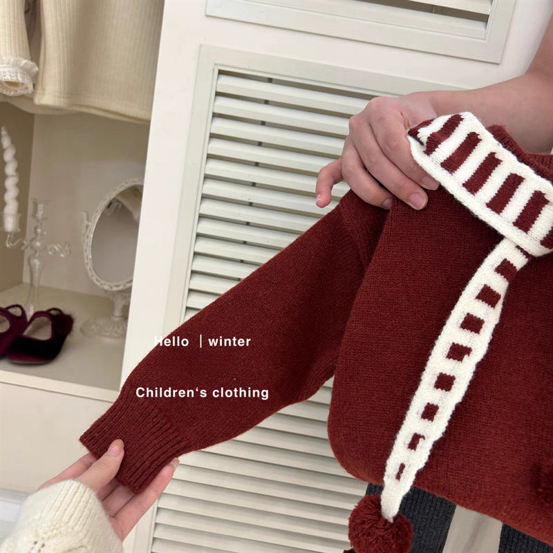 【Sweet Little Chef】New Year Red Sweater2025Autumn Winter Layered Shawl Knitted Sweater Top Girls' Set Trendy