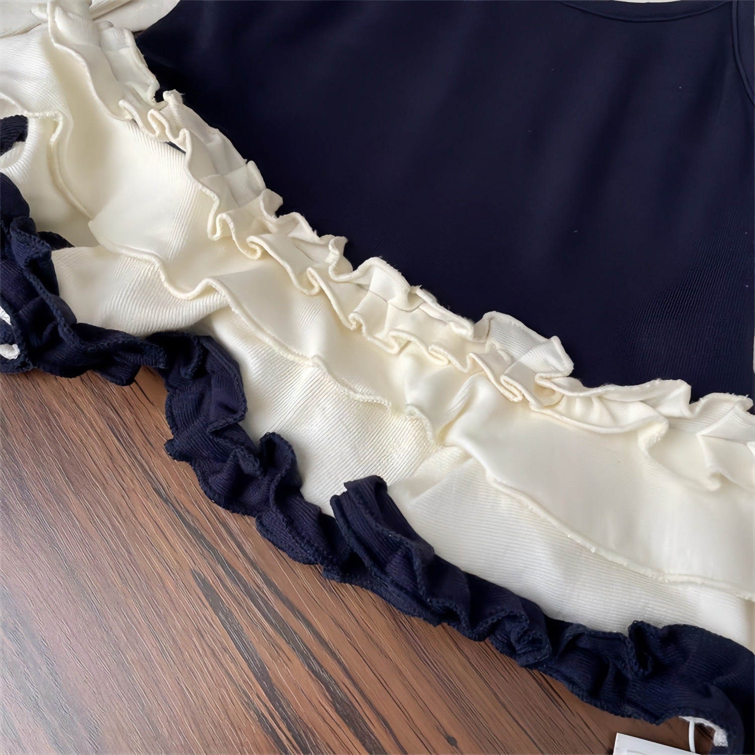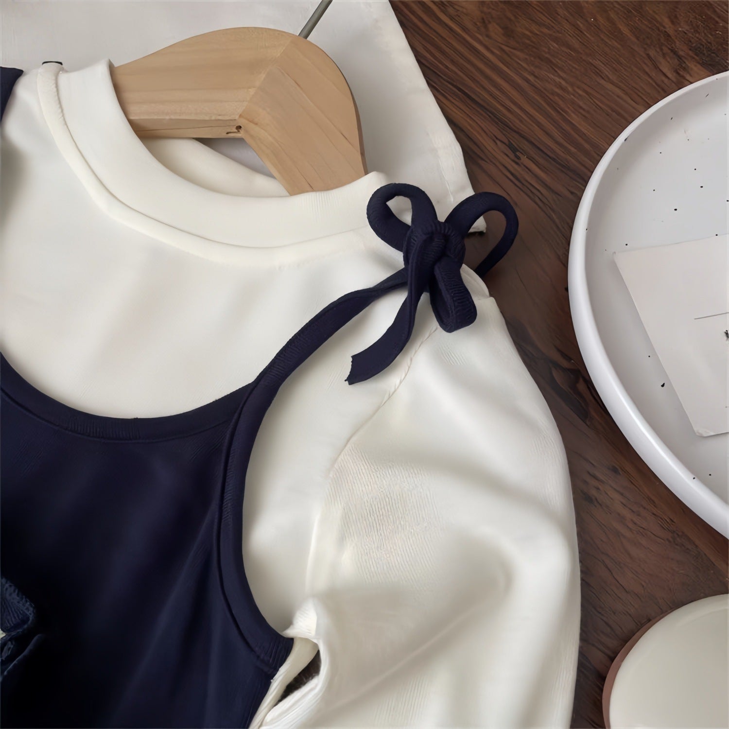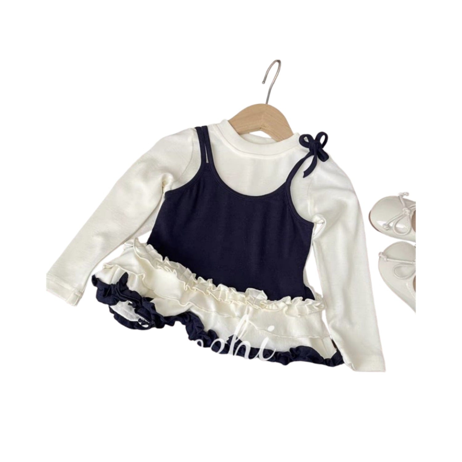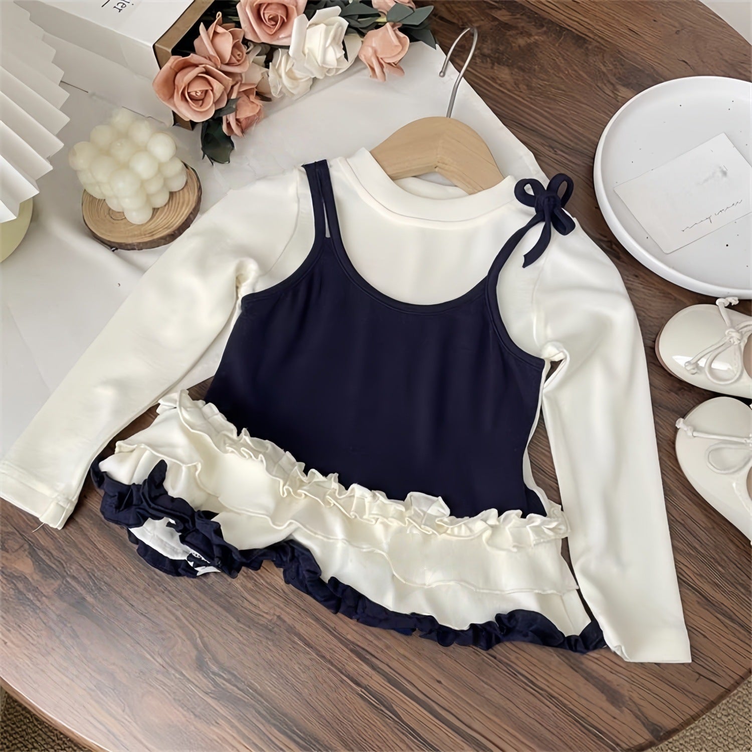 Sweet Little Girl Autumn Outfit Set Autumn Children's Lace Fake Two-Piece t T-shirt Top Polka Dot Pants Baby Set