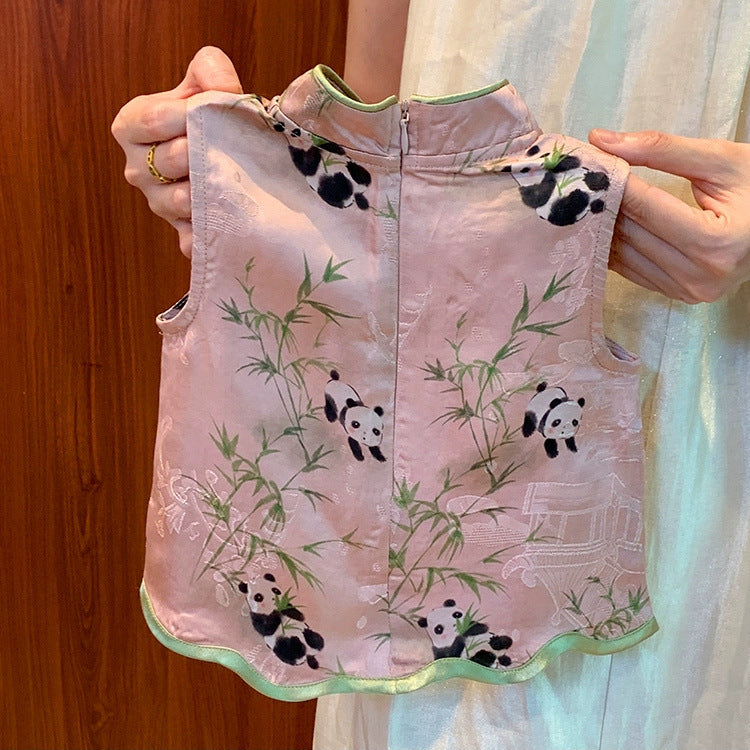 Sweet Little Girl Chinese Style Outfit Summer New One-Year-Old New Chinese Style Baby Girl Stylish Vest Pants Two-Piece Set