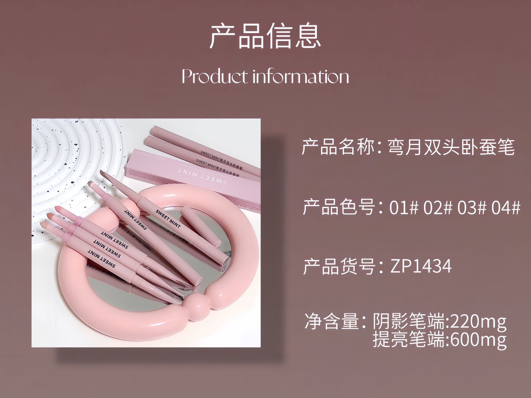 sweet mint Crescent Double-Ended Eyeliner Pen Pearlescent Fine Shimmer Lower Shadow Contour Highlight Brightening1434