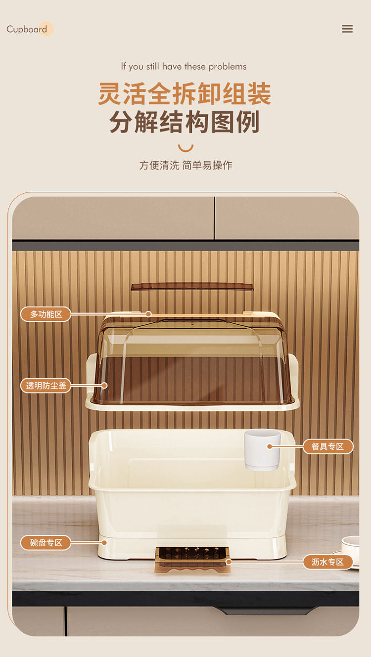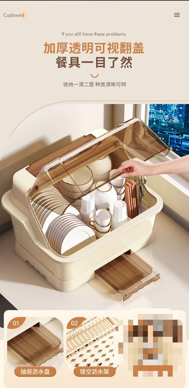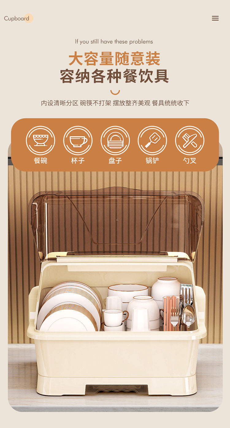 Tableware Storage Box Place Bowls and Dishes Storage Rack Kitchen Tableware Household Storage Box Draining Storage Rack Cupboard