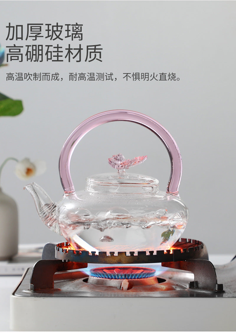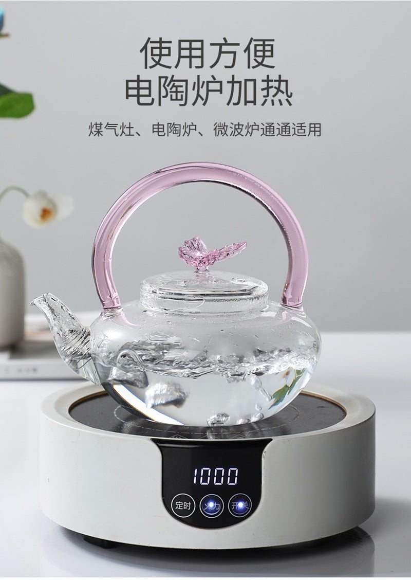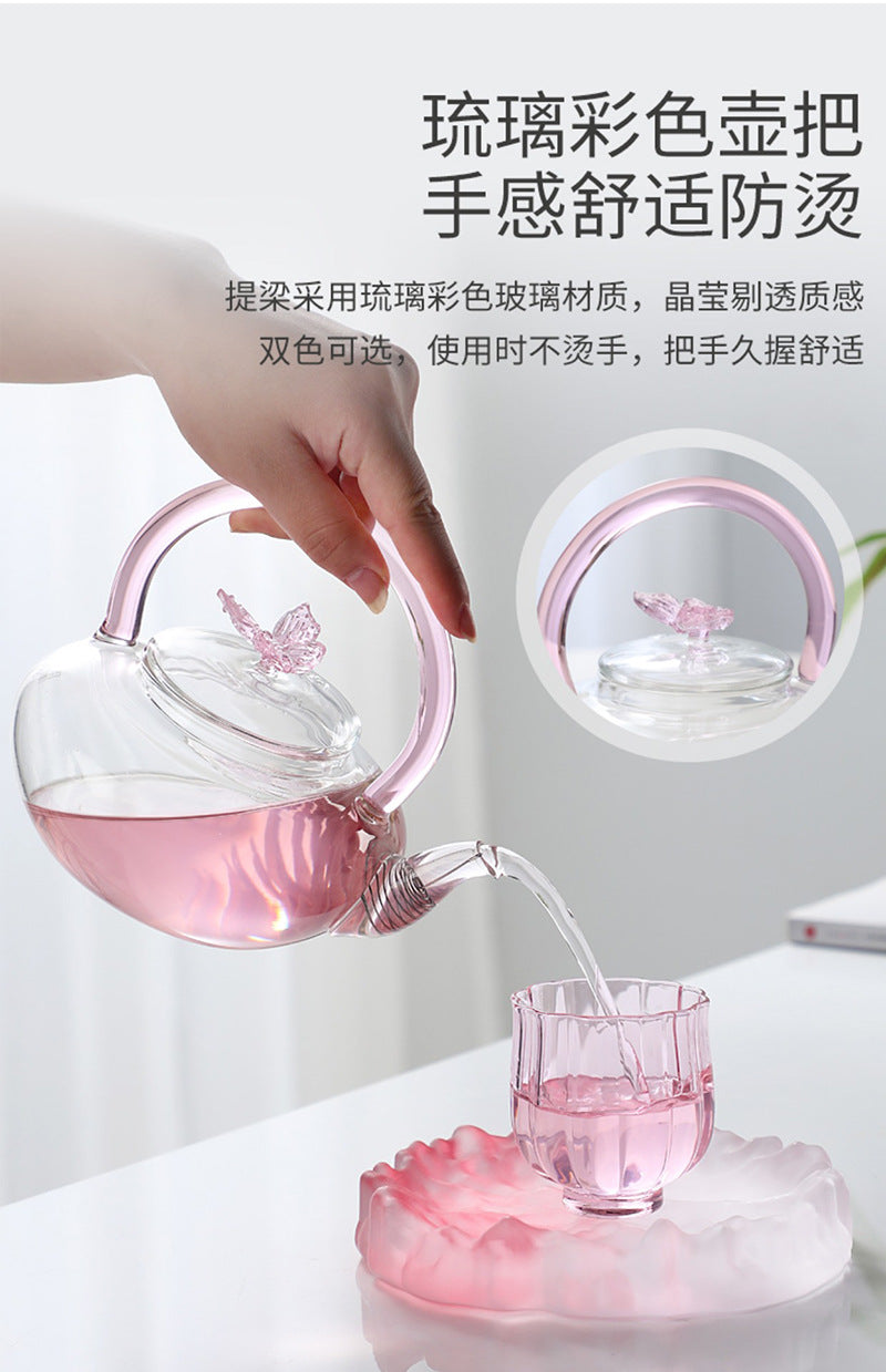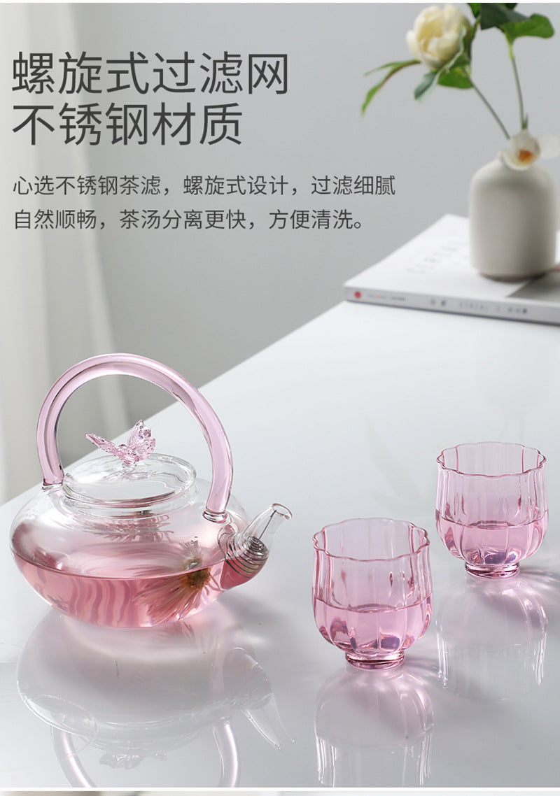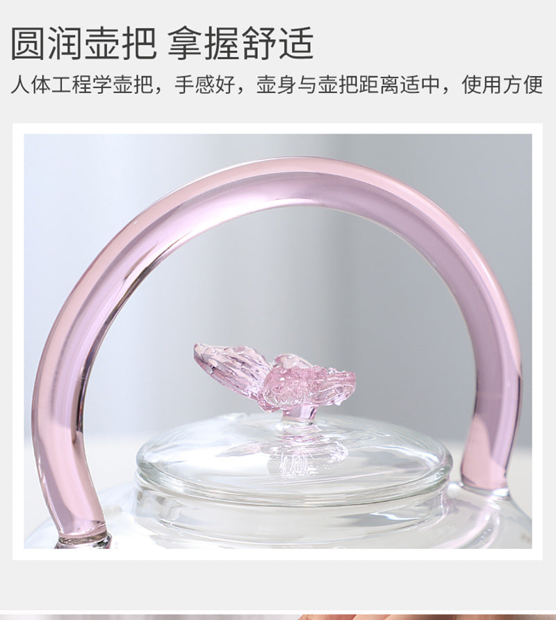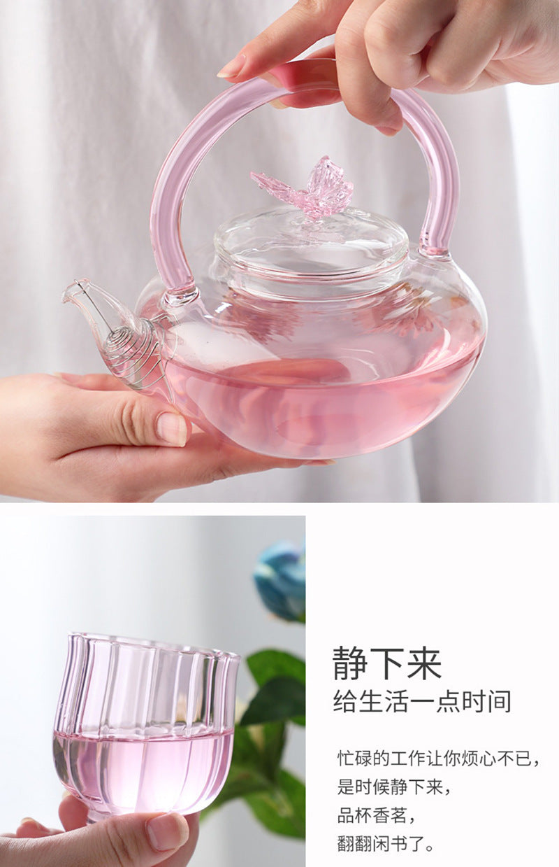 Teapot with Pink Handle Butterfly Teapot High Borosilicate Heat-Resistant Glass Teapot Electric Ceramic Stove Special Tea Brewing Teapot Flower Tea Teapot