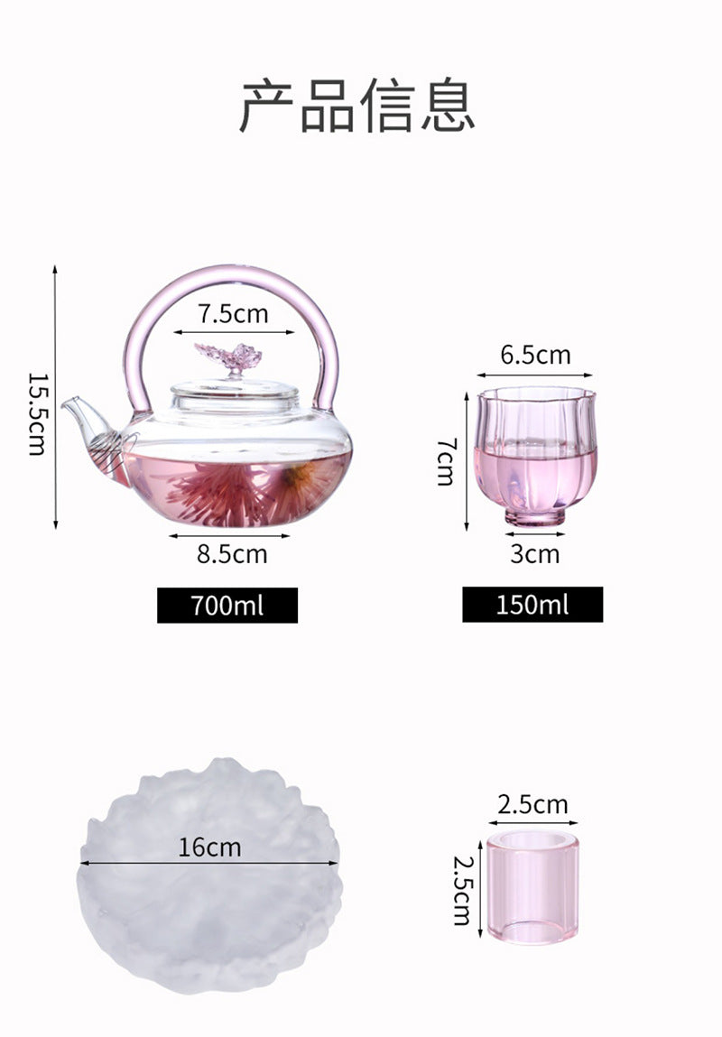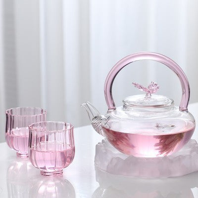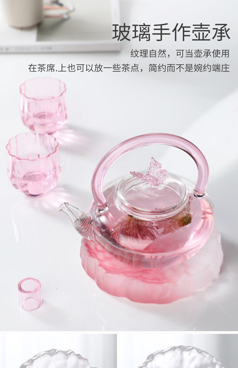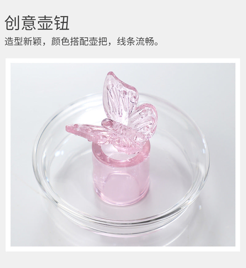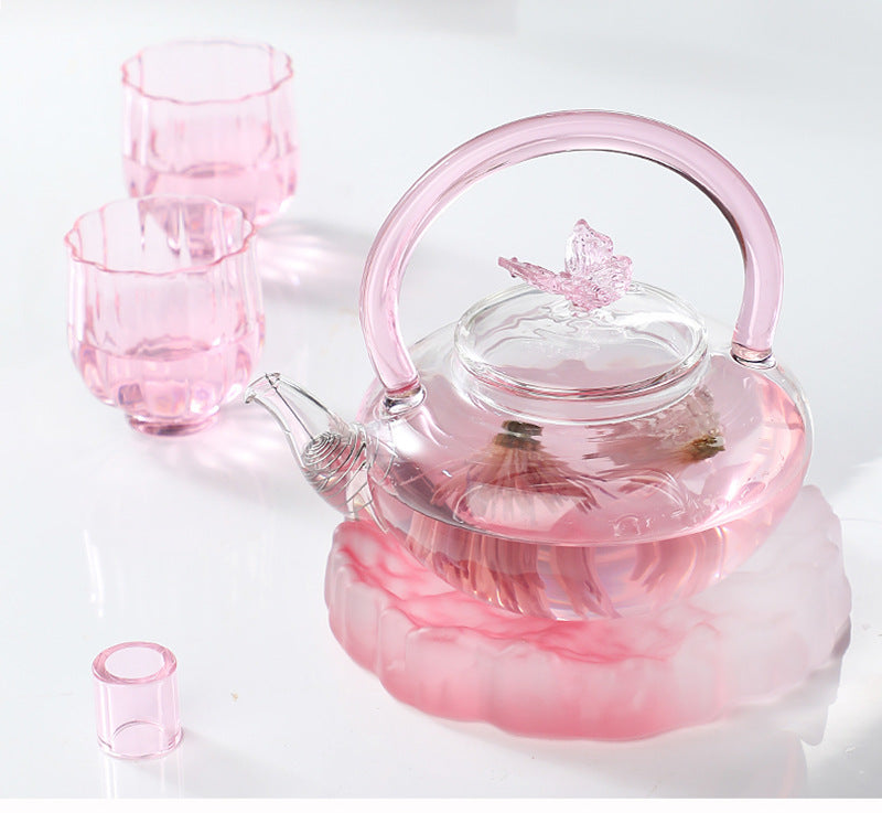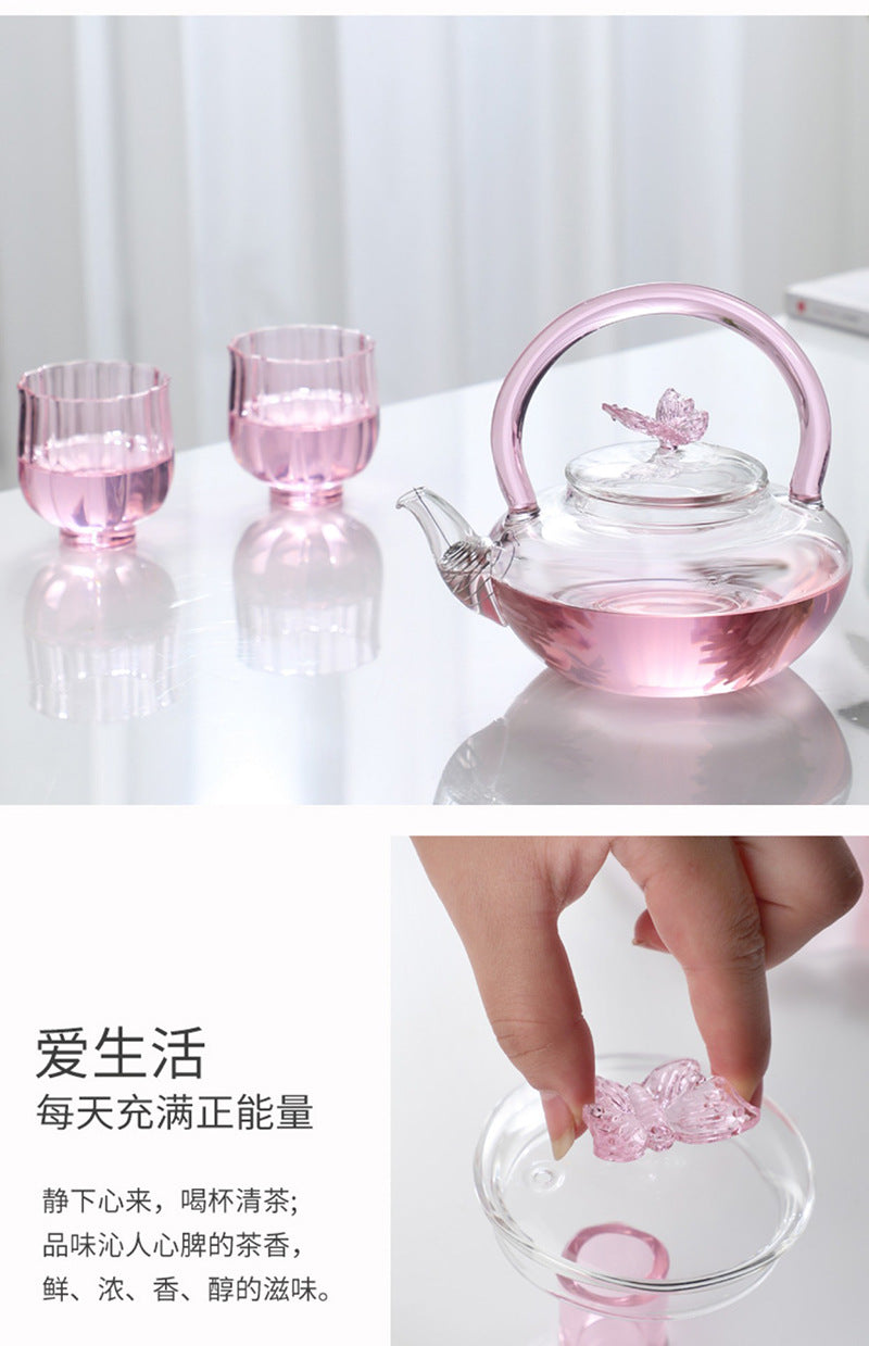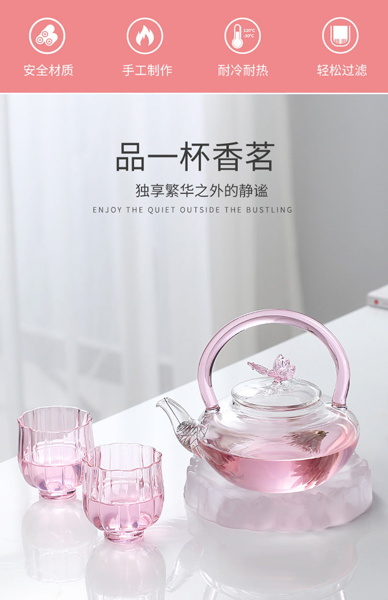Teapot with Pink Handle Butterfly Teapot High Borosilicate Heat-Resistant Glass Teapot Electric Ceramic Stove Special Tea Brewing Teapot Flower Tea Teapot