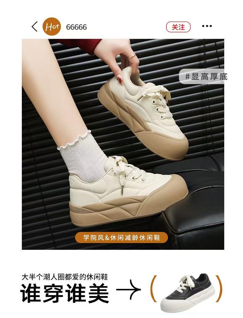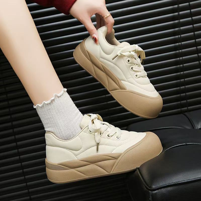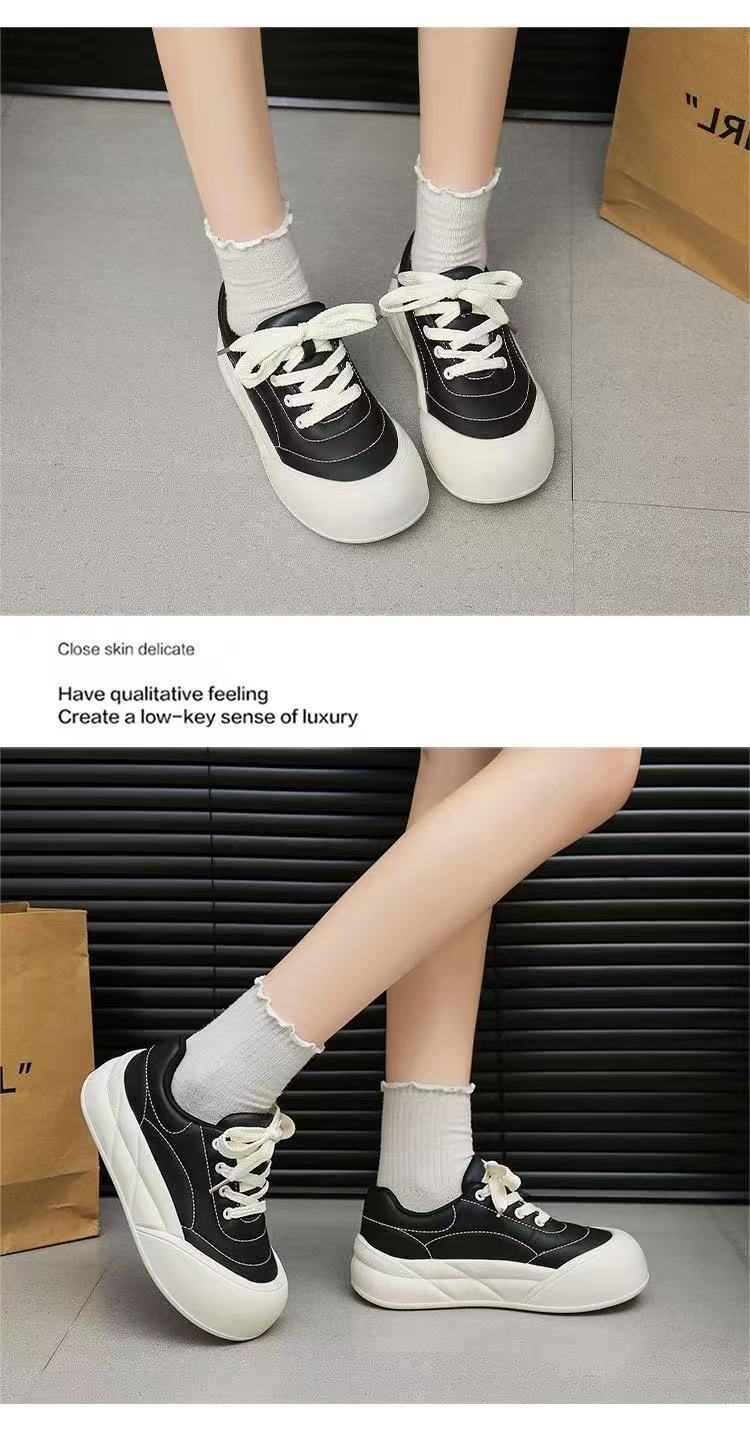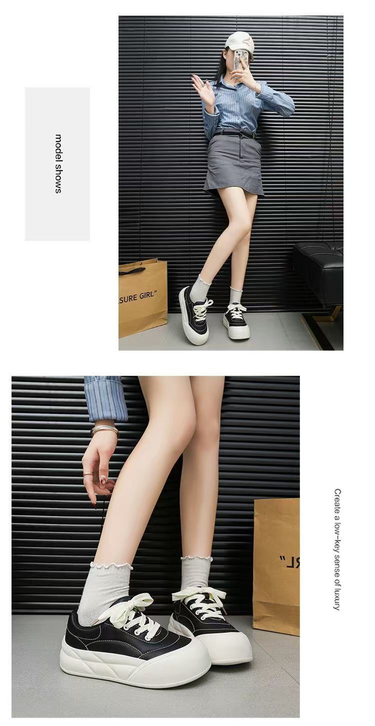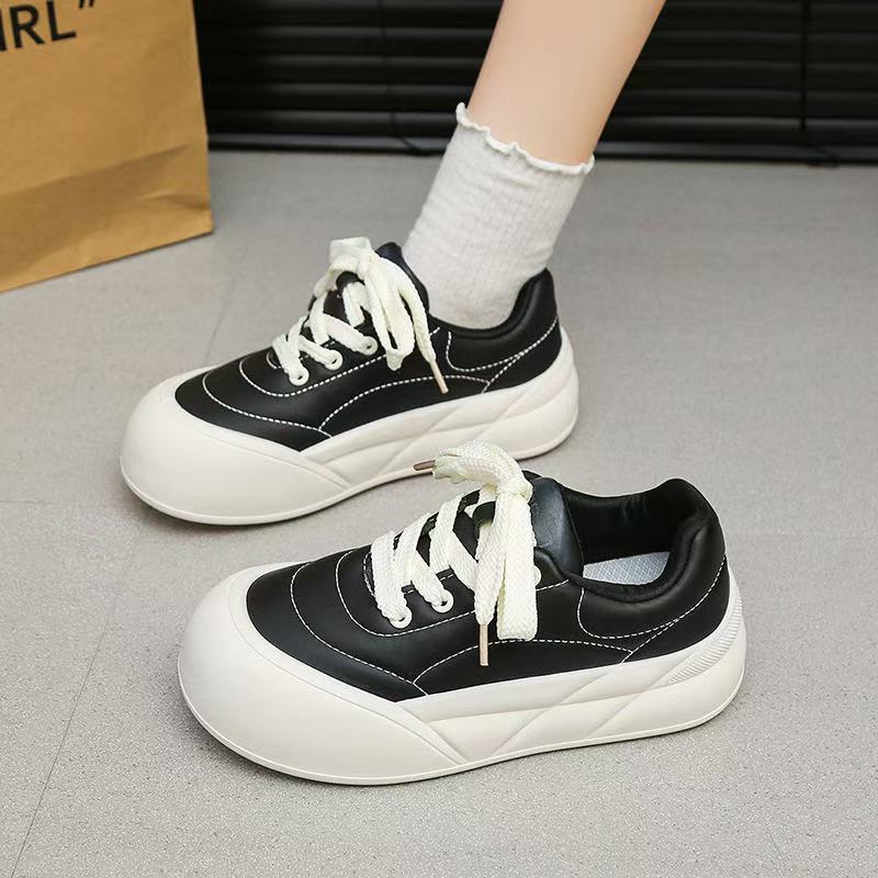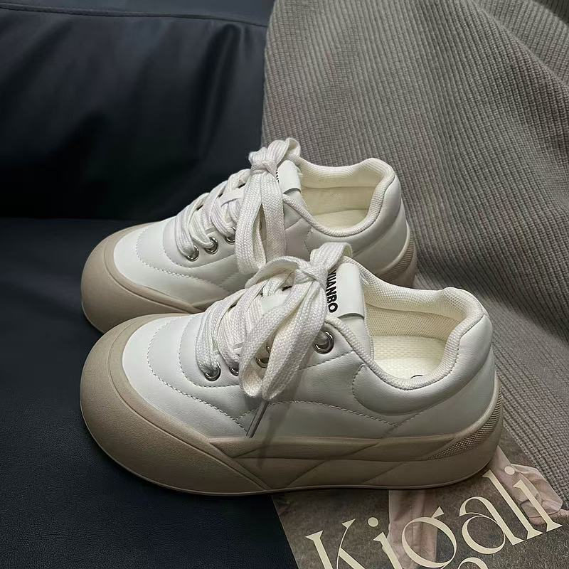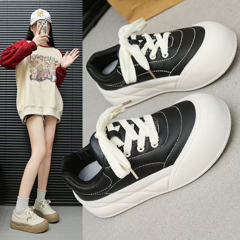Thick-soled White Sneakers Versatile for Women2025Spring New Student Sports Shoes Big Toe Bread Shoes Board Shoes Wholesale Shoes
