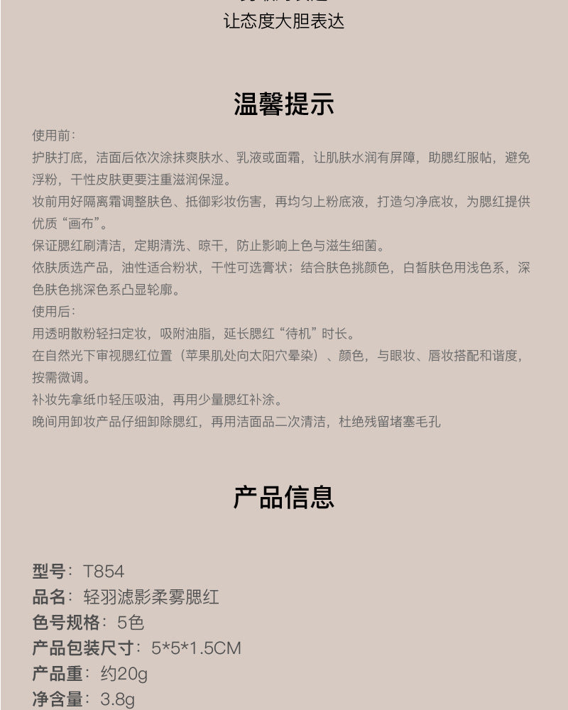 Toot Dodo Light Feather Filter Shadow Soft Mist Blush Low Saturation Facial Contouring Brightening Whitening Rouge for Beginners T854
