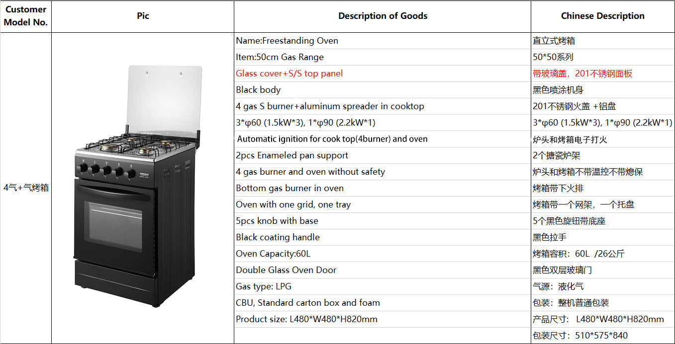 utomatic ignition Oven gas stove Upright Visual Multi-Hole Gas Oven Integrated Stove