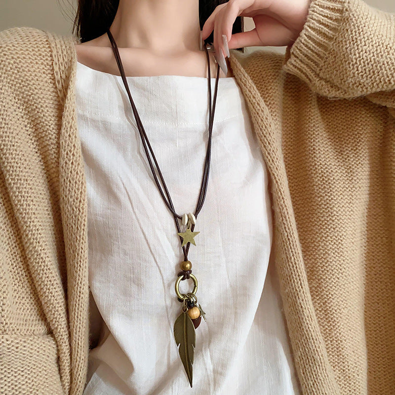 Vintage Distressed Starfish Metal Pendant Necklace Bohemian Ethnic Style Choker Collarbone Chain Vacation Style Necklace for Women