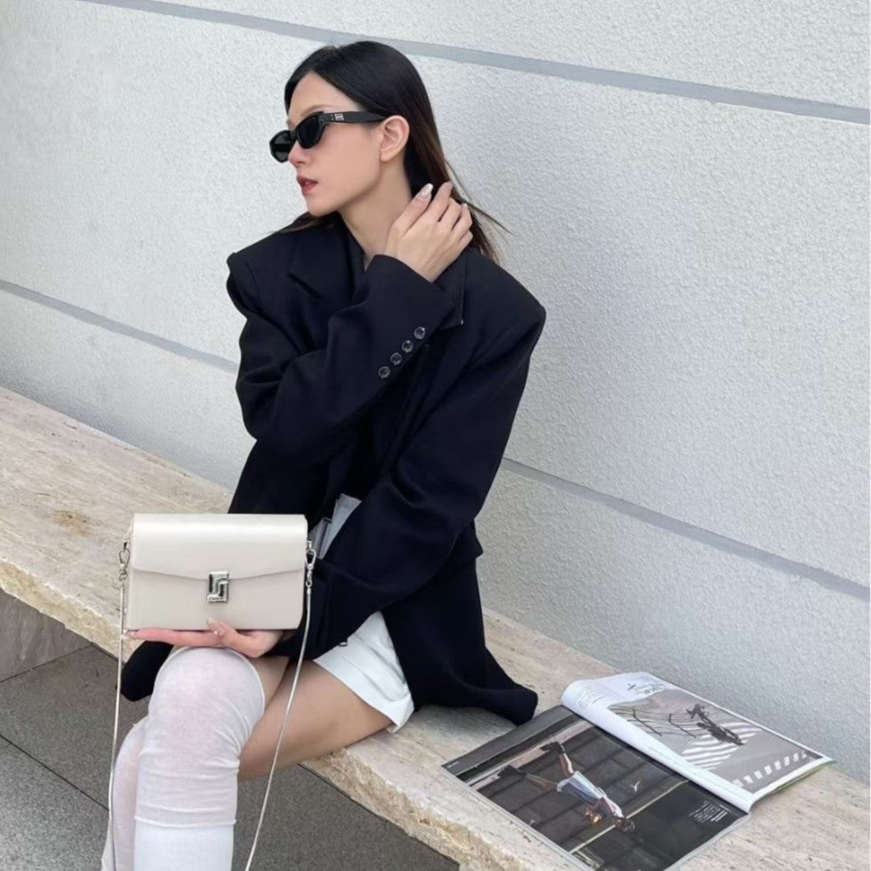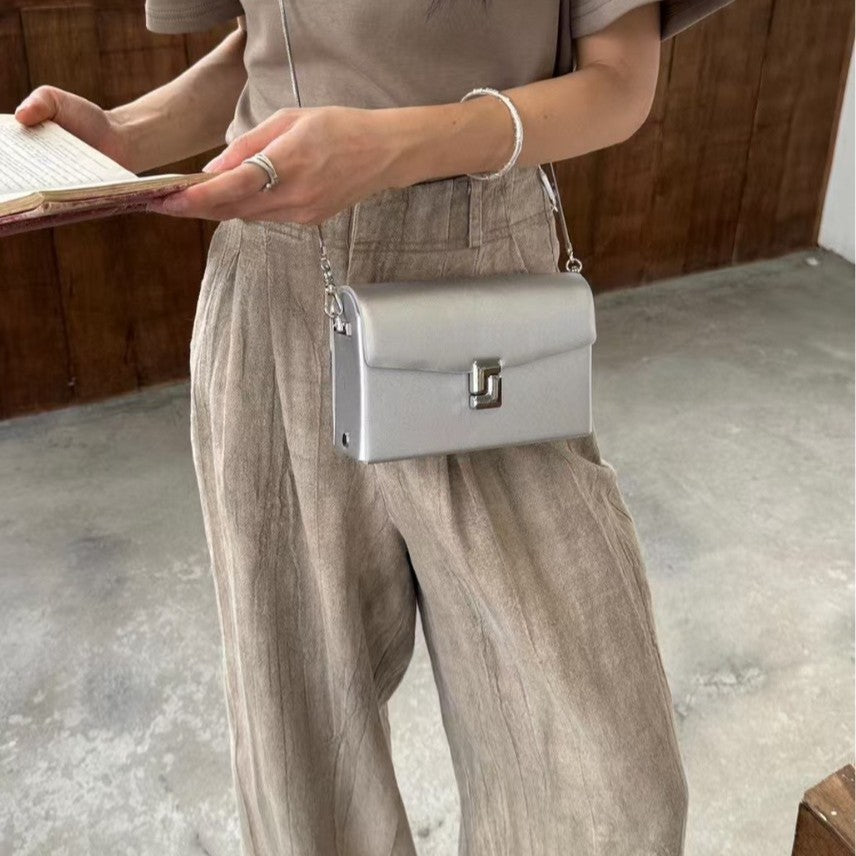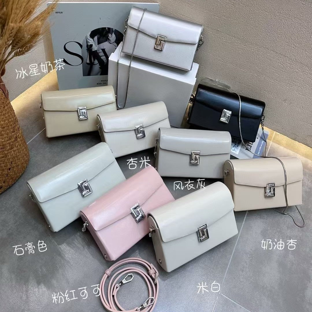 Vintage High-End Genuine Leather Women's Bag Exquisite Small Capacity Clutch Metal Chain Shoulder Crossbody Bag Fashionable Versatile