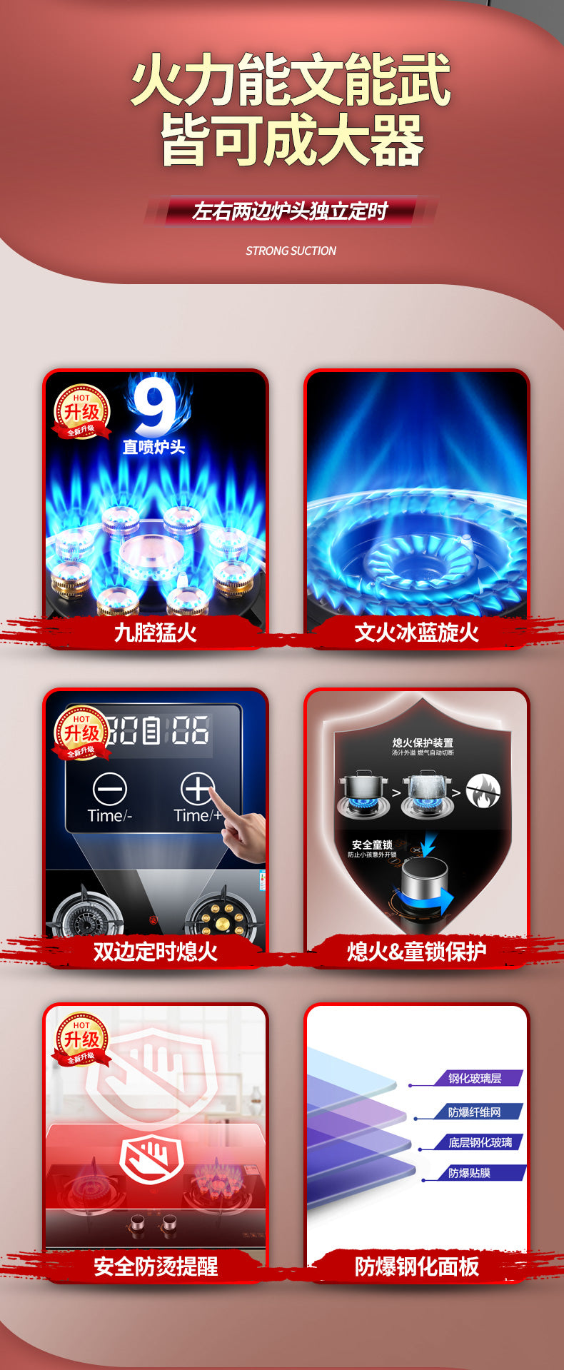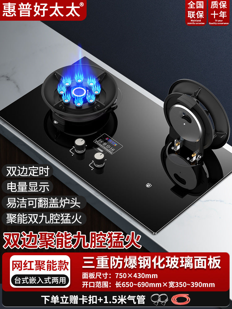 Wholesale High Power Nine-Burner Intense Flame Gas Stove Household Dual Burner Built-in Dual-use Gas Stove Natural Gas Dual Burner