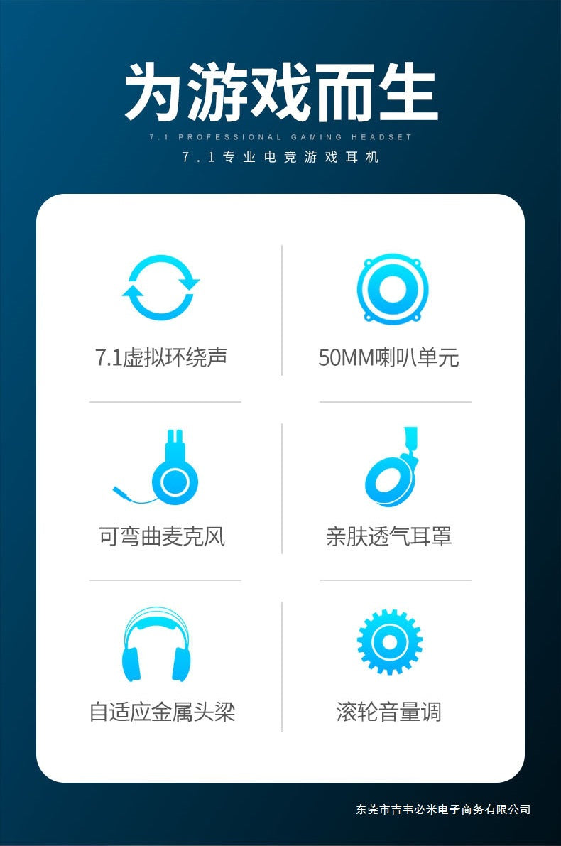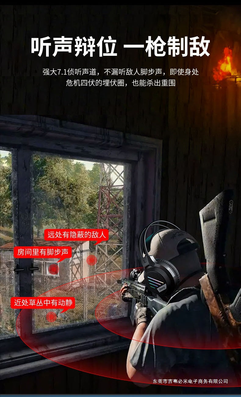 Wrangler Over-Ear Computer Headphones with Microphone Wired Desktop Gaming E-Sports Dedicated7.1Headset USB Large