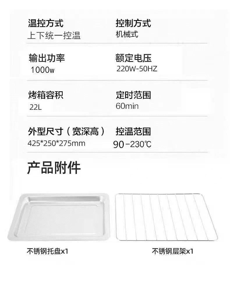 Product NameElectric Oven 22L (220V, 50Hz, 1000W)