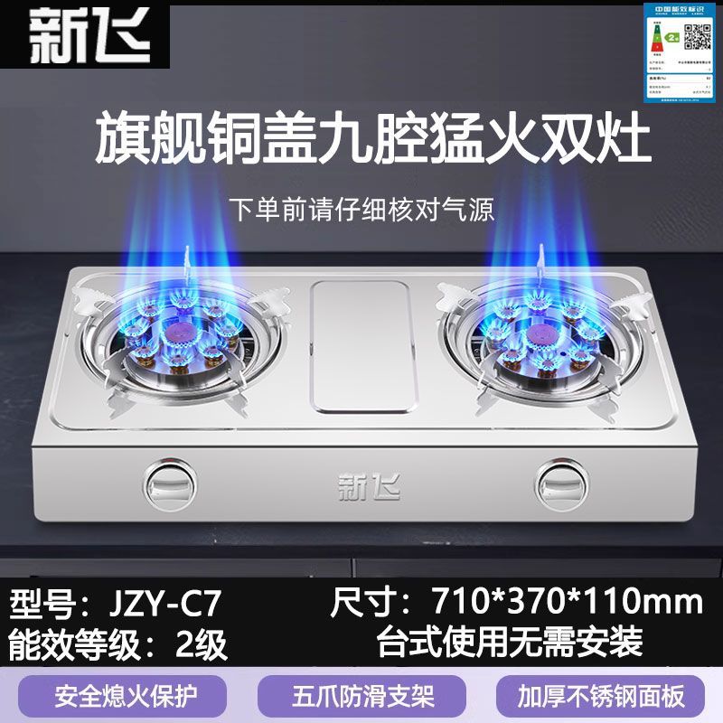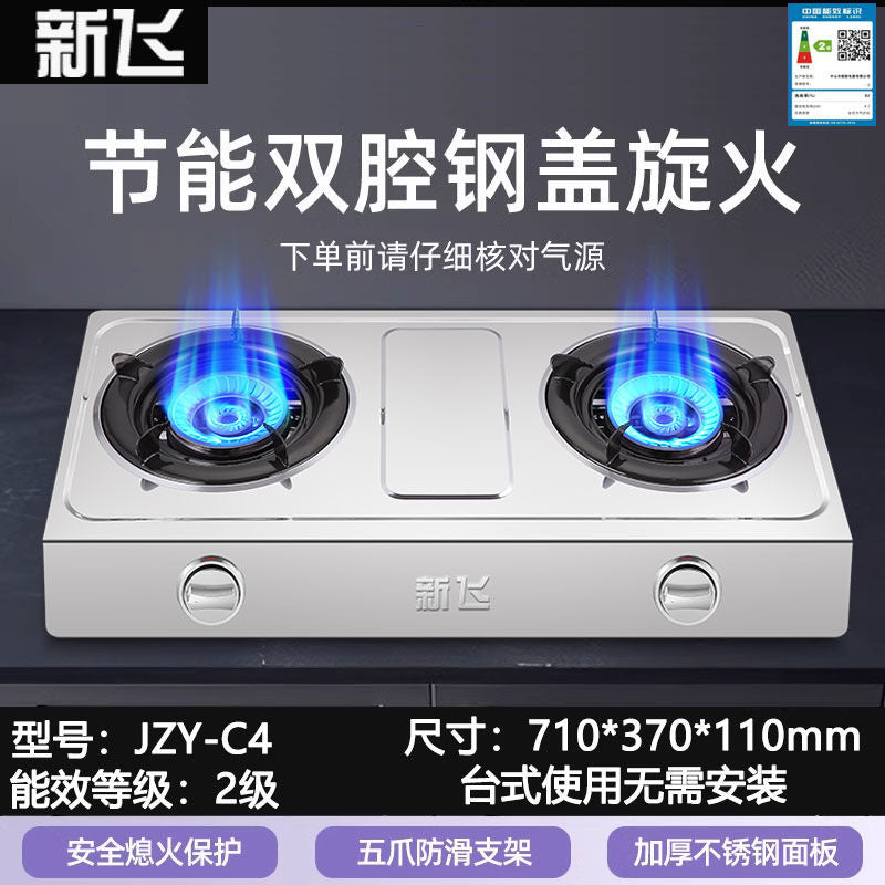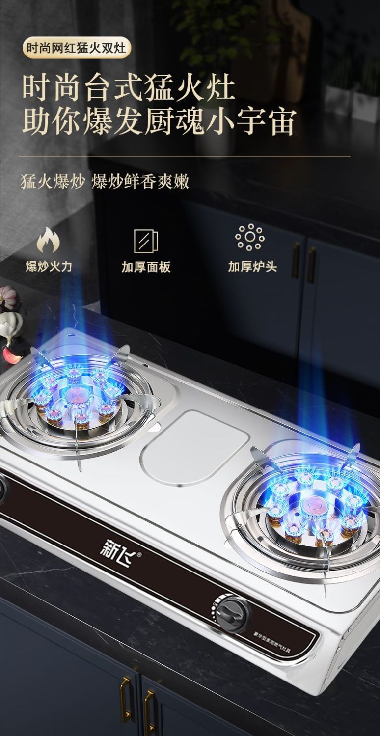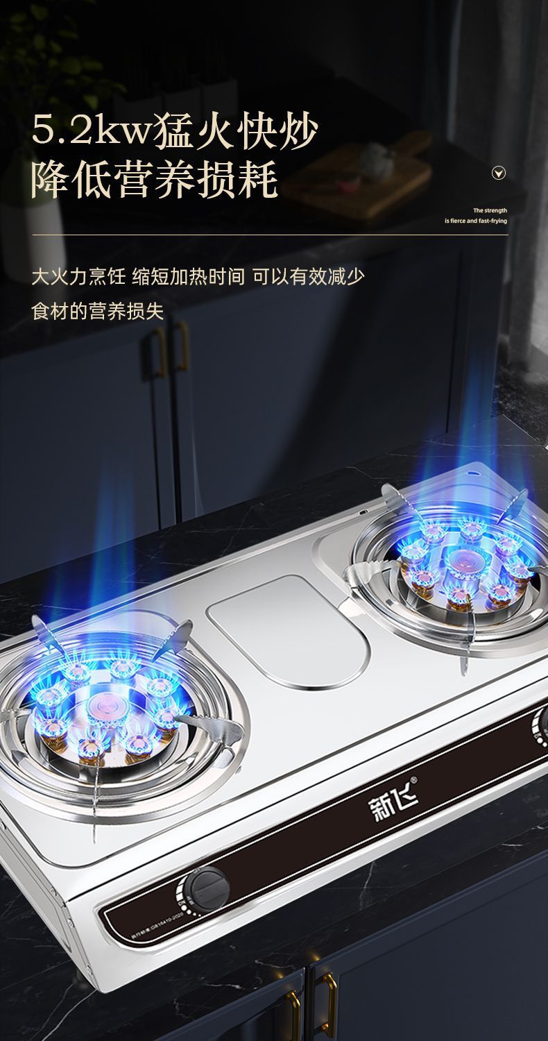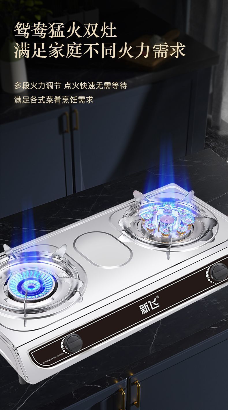 Xinfei Gas Stove Double Burner Household Countertop High Flame Liquefied Gas Stainless Steel Energy-saving Natural Gas Double Burner
