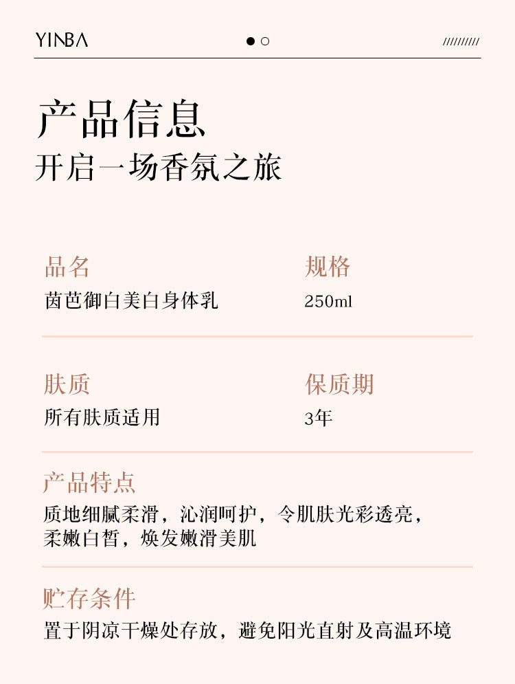Yinba Whitening Body Lotion Moisturizing Nourishing Skin Improves Keratosis Pilaris Dullness Long-lasting Fragrance Cold White Skin Body Lotion