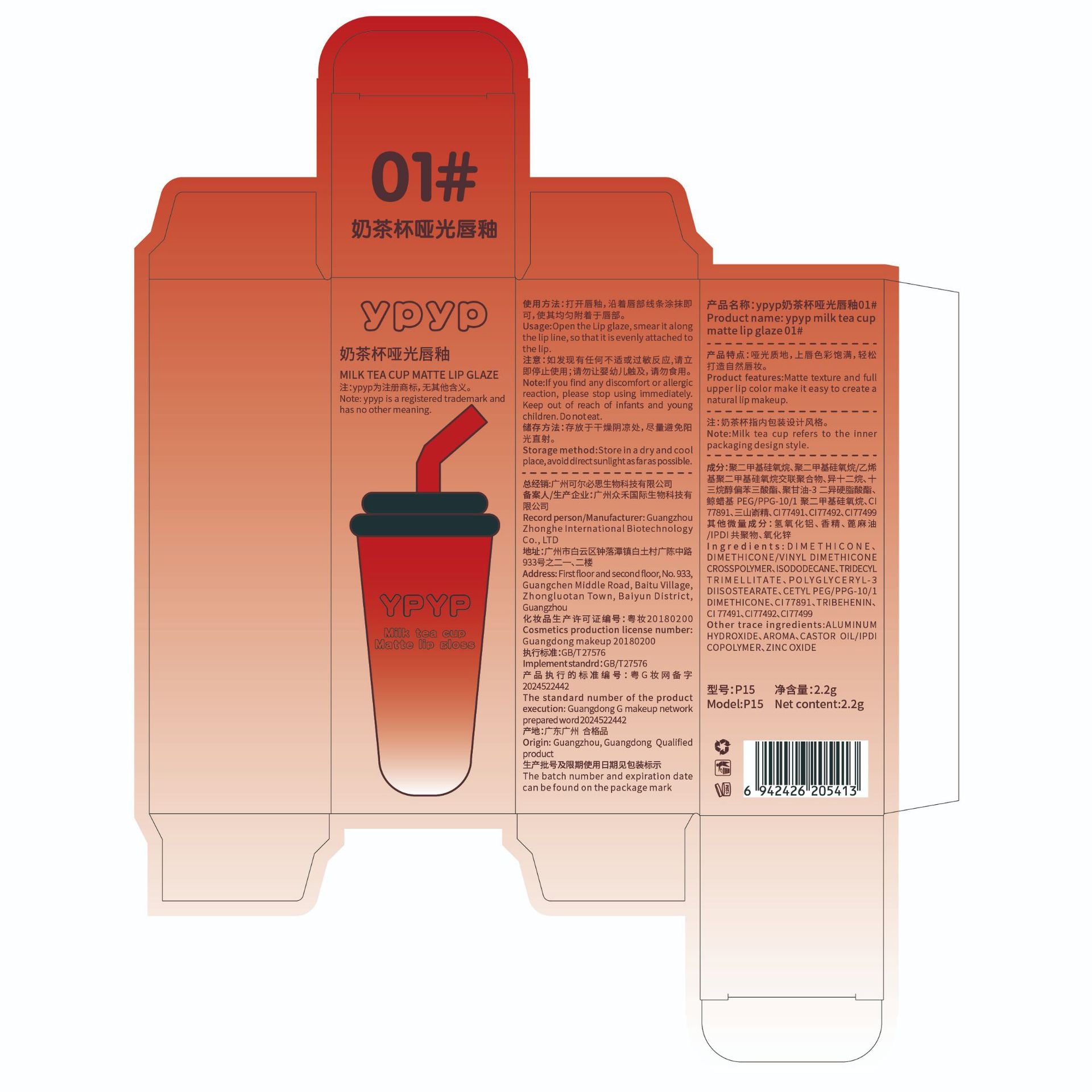 YPYP Milk Tea Cup Lip Mud Velvet Matte Matte Whitening Non-stick Cup Lipstick Lip Glaze Student Party Affordable Makeup Women