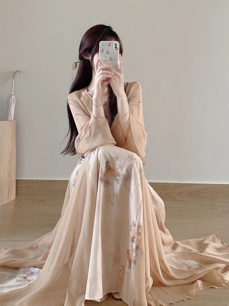 Yuelonggauze2025New Chinese Style National Style Dress Cool Zen Set Ancient Style Wabi-Sabi Dress Tea Dress Cheongsam Dress