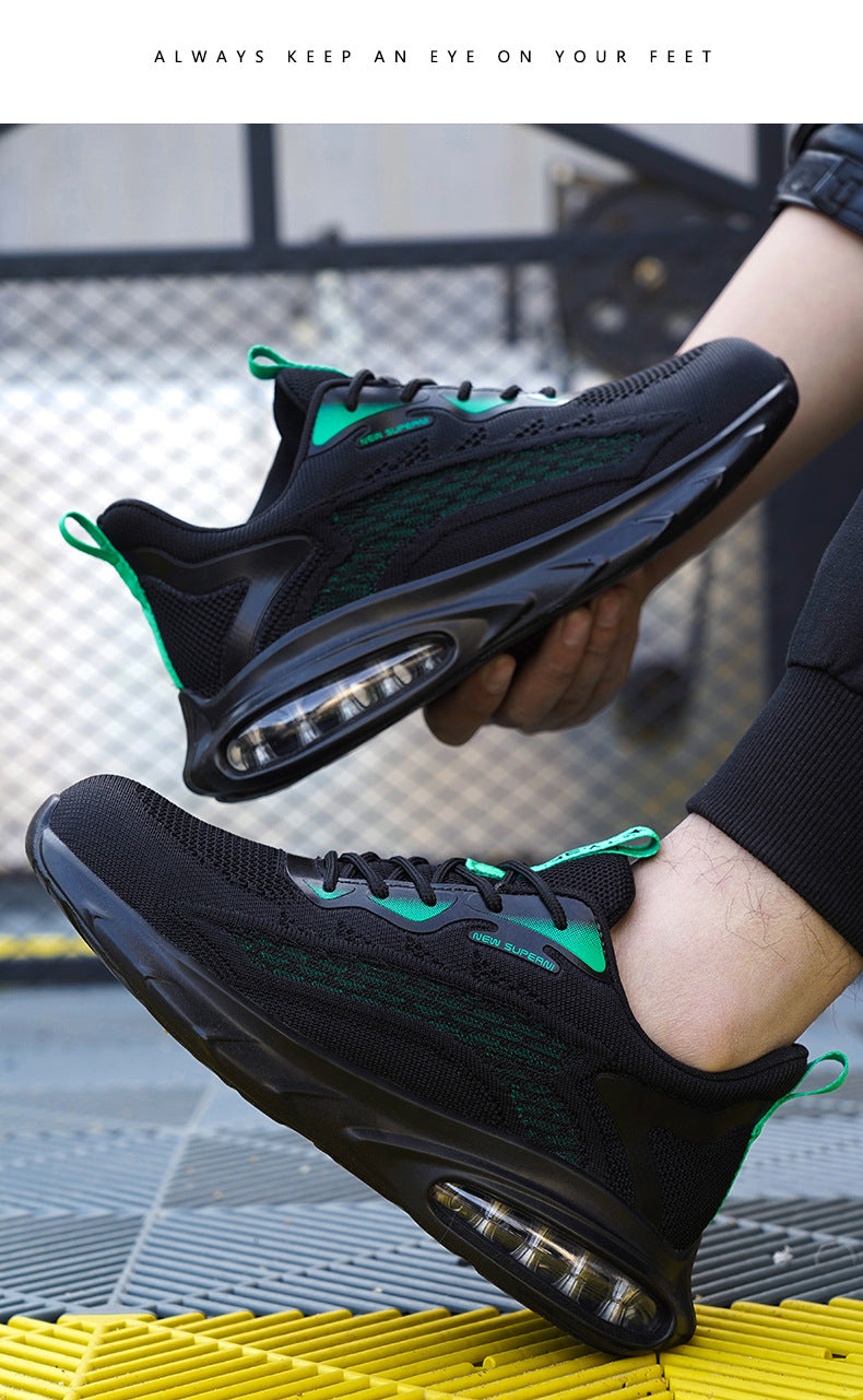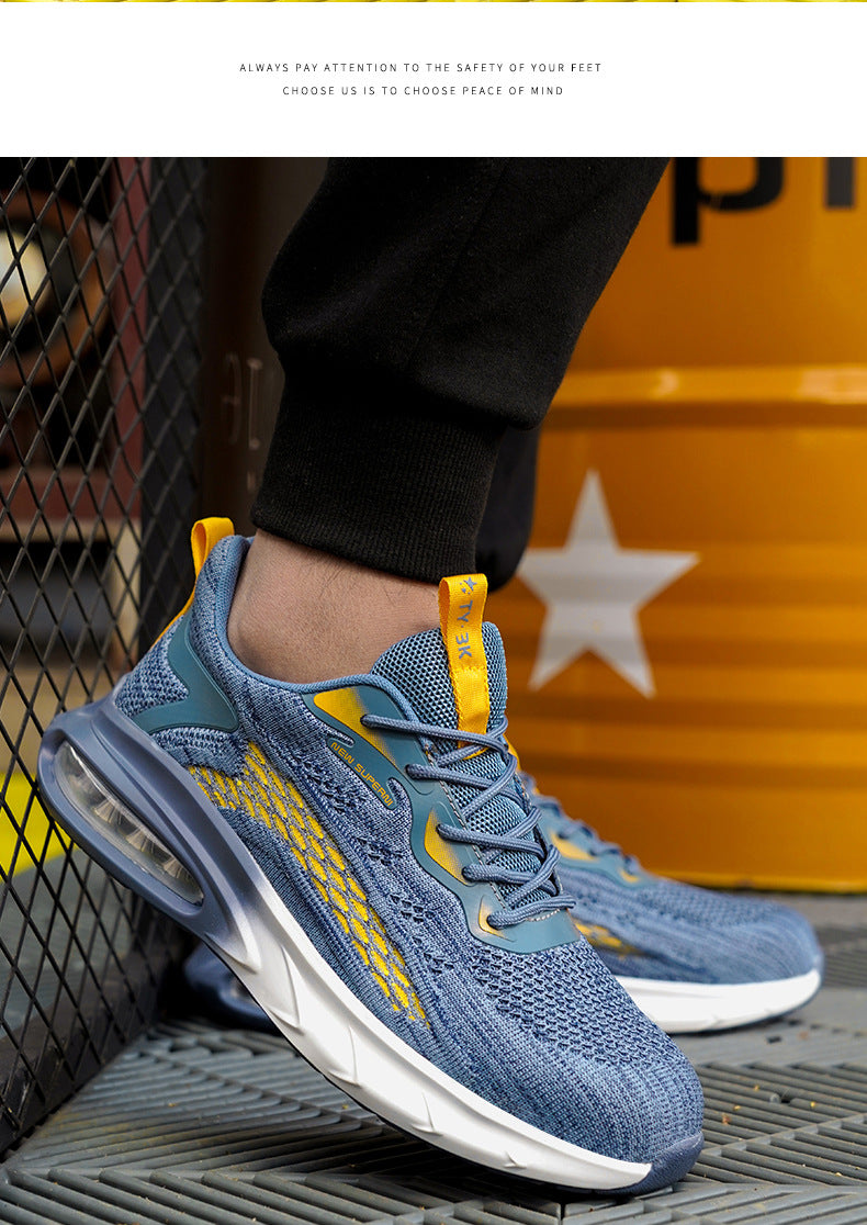Zhen Gu Cross-Border Safety Shoes for Men and Women, Air Cushion Shock Absorption, Anti-Smash, Anti-Puncture, Breathable Safety Shoes with Steel Toe Cap for Men