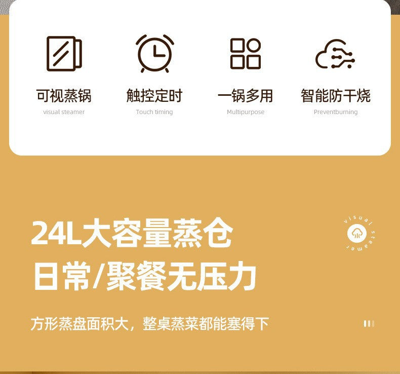 Zhigao Electric Steamer Multi-Function Home Use Steamer24L Large Capacity Visible Lid Three-Layer Gift Wholesale Electric Steamer